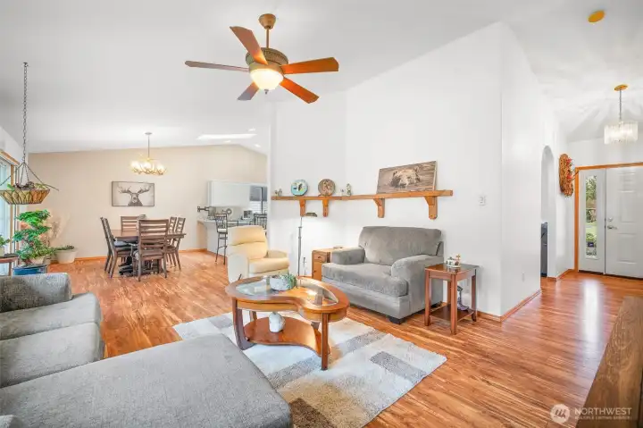 Open-concept great room designed for connection and comfort with seamless flow to kitchen and dining.