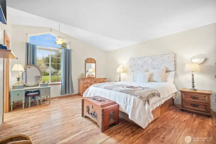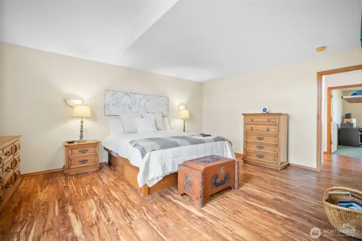 Oversized primary retreat with walk-in closet and jetted tub for a spa-like feel.