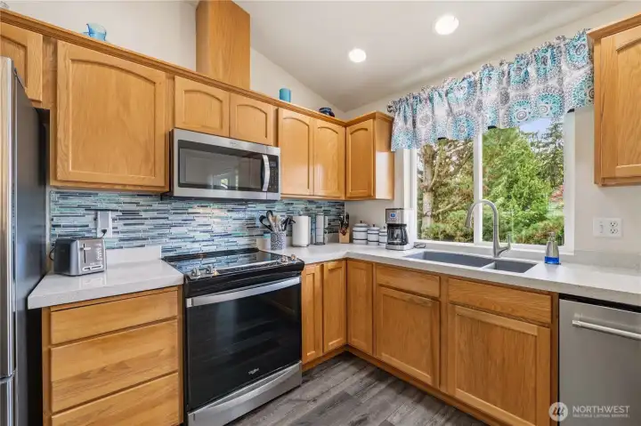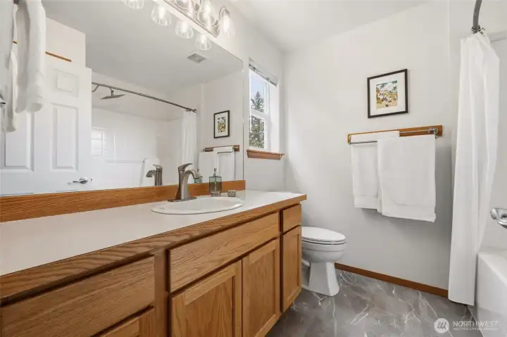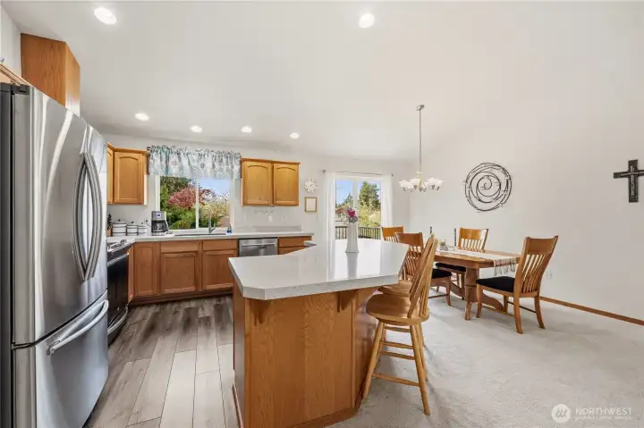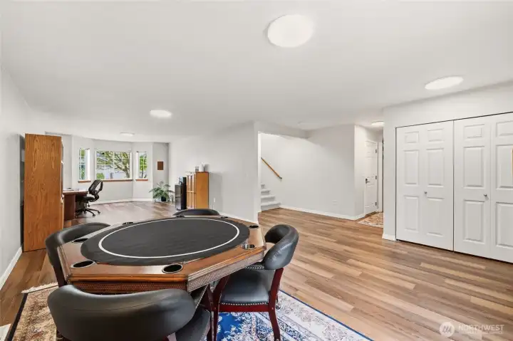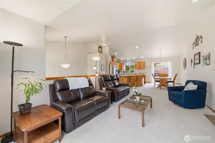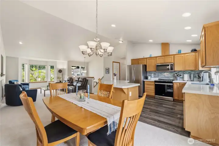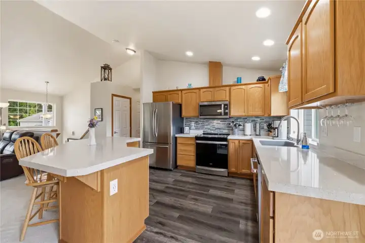 Park-like living with proximity to it all: welcome to life at Redwood Park! Tucked on a quiet loop close to endless amenities, this lovingly maintained gem offers move-in ready updates & a functional layout for easy, modern-day living. Sunlight pours in through abundant windows to accentuate new LVP floors & carpet, a cozy gas fireplace, vaulted ceilings, open & inviting living areas, & a kitchen that truly serves as the anchor for life's memorable moments: quartz counters & stainless appliances center around a large island w/ bar seats, perfect for breakfast on the go & relaxed gatherings with loved ones. Smart layout with three beds on the upper level, including a spacious primary w/ a full ensuite bath. Downstairs, a versatile rec room & 4th BR option/home office offer endless possibilities for remote work, fun nights at home, guests, or whatever else you can imagine. Two decks + a flagstone patio give you plenty of room to embrace upcoming summer fun & dine al fresco. A new roof + an oversized 2-car garage w/ storage space add value & peace of mind. Friendly neighborhood w/ a beautiful 1-acre community park, and everything you need close by: groceries, dining, Silver Lake recreation, shopping, Boeing, & access to transit, I-5 & park-n-ride. Welcome home!