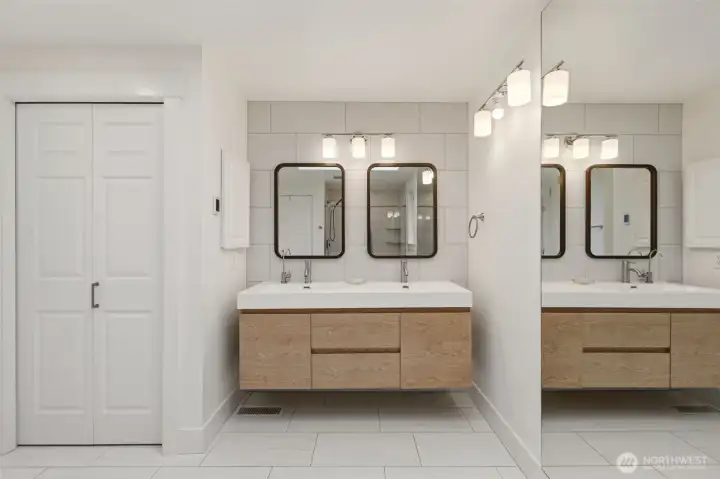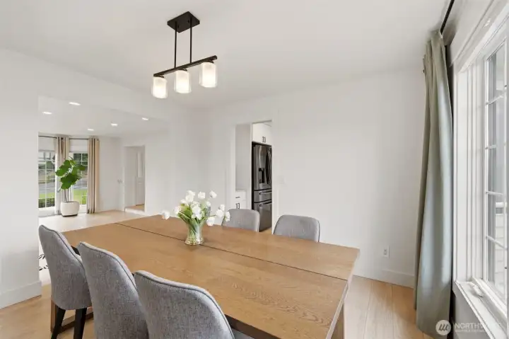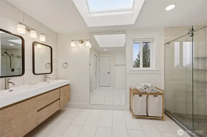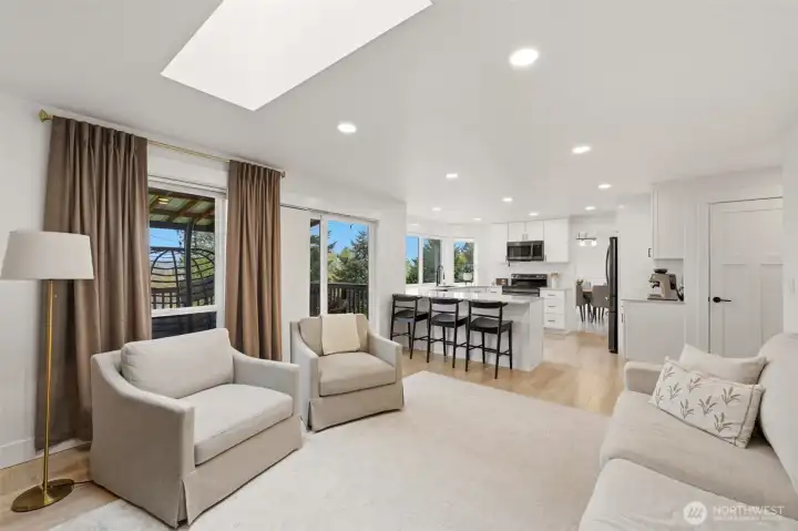 Perched in the desirable Lakeland Hills community, this beautifully reimagined residence offers refined living with sweeping, unobstructed views and exceptional attention to detail throughout. Fully remodeled with a modern aesthetic, the home effortlessly blends sophistication, comfort, and flexibility. The main level features 3 bedrooms and 2.5 bathrooms, complemented by spa-inspired bathrooms with heated tile floors for a touch of everyday luxury. Primary bedroom has an additional room attached for convenience of office space, nursery, or reading nook. Every space has been thoughtfully updated, creating a cohesive, fresh, and contemporary feel. Downstairs, you’ll find two additional bedrooms, a spacious living area, a full kitchen, laundry room, and ample closet space—perfect for multi-generational living, guests, or rental potential. Enjoy year-round comfort with a new heat pump and furnace installed recently plus a water heater replaced only a year ago. Outside, a built-in sprinkler system keeps both the garden and front landscaping lush and vibrant with ease. Spacious garage with EV charger. Located in a highly sought- after school district, this home combines convenience with long-term value. Near parks, trails and shops. Sophisticated, turnkey, and designed for modern living—this Lakeland Hills residence is a rare opportunity to enjoy elevated comfort with breathtaking views.