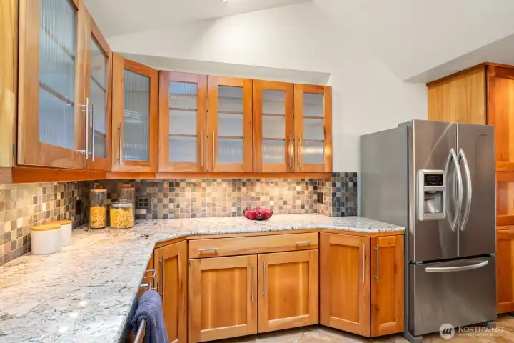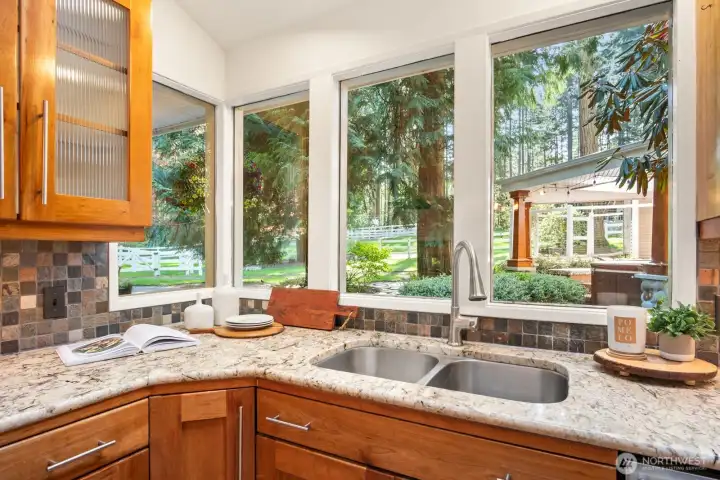 Kitchen with pasture views and custom cabinets