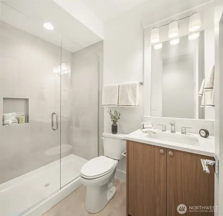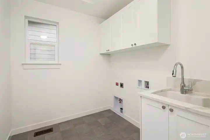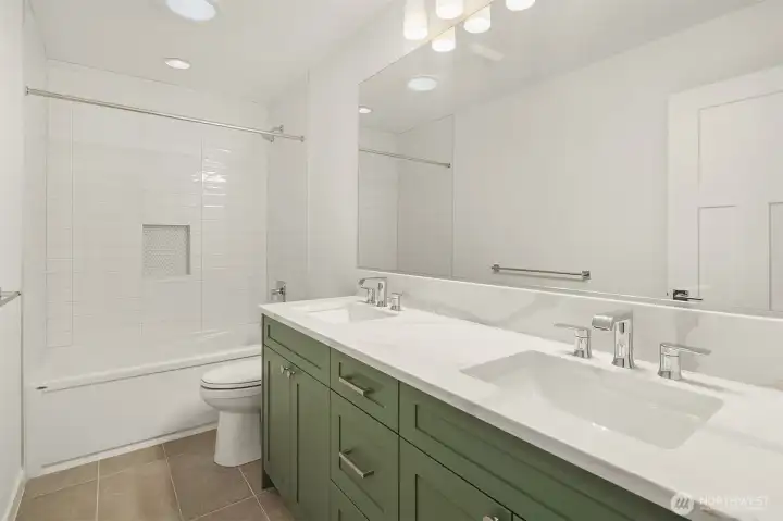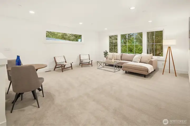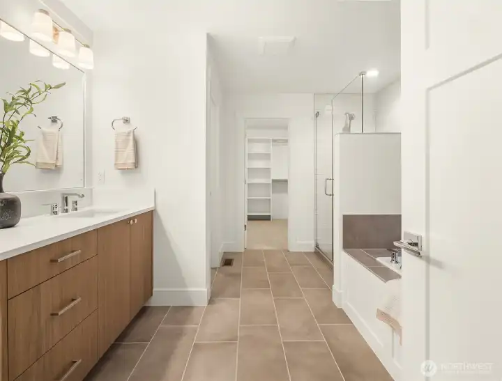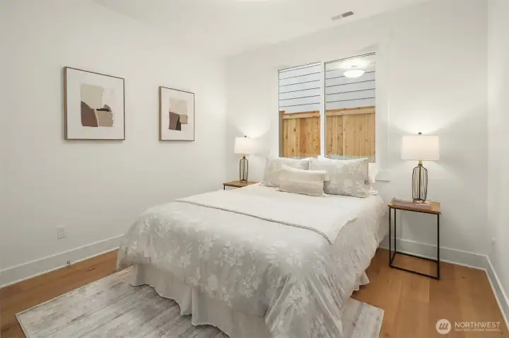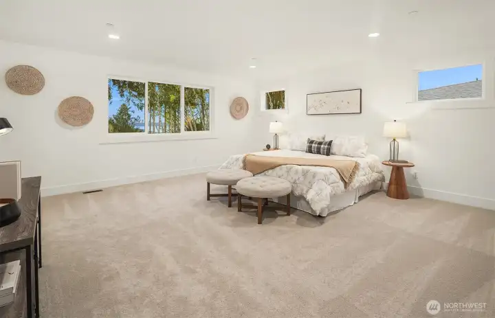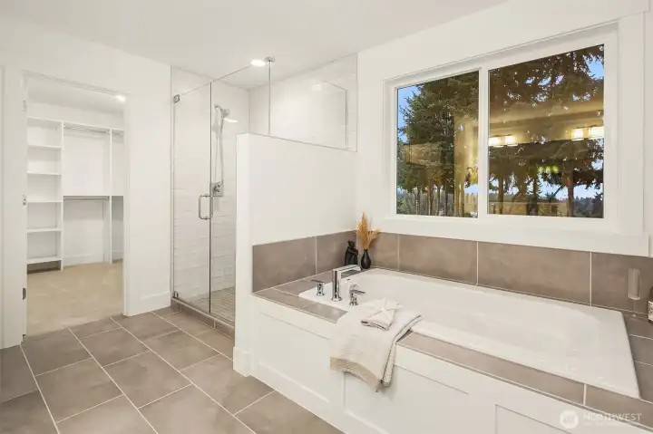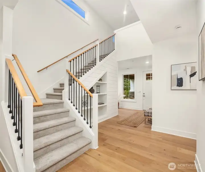 Select Homes’ new construction residence is nestled in Edmonds’ desirable Westgate neighborhood. This 5-bedroom, 3-bath home showcases elevated craftsmanship and a welcoming open-concept design throughout. Wide-plank oak hardwood floors span the main living areas, while the living room offers a cozy gas fireplace for year-round comfort. The staircase displays thoughtful detailing with a built-in bookcase and shiplap design. The entertainer’s kitchen is thoughtfully appointed with Mistério quartz countertops, a large island with seating, five-burner gas cooktop, and double oven perfect for both everyday living and hosting. A walk-in pantry provides ample storage. Just off the kitchen, the dining area is ideally situated for effortless gatherings. The first floor is complete with a main floor bedroom. Upstairs, the primary suite provides a spa-like retreat complete with a soaking tub and walk-in closet. Three additional spacious bedrooms, a full bathroom with a forest-green vanity, a roomy bonus room, and a laundry room complete the upper level. Also featured upstairs, a peekaboo view of the Olympics and Puget Sound. Step outside to a fully fenced, beautifully landscaped backyard with plenty of space for summer entertaining and play. A 3-car garage with EV charging readiness and a built-in mudroom right off the garage rounds out this exceptional home.