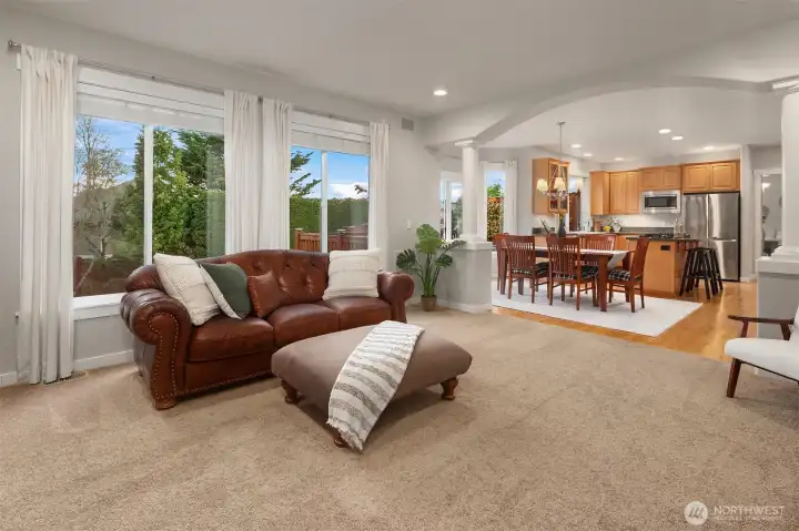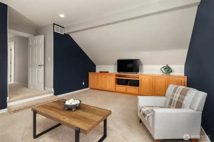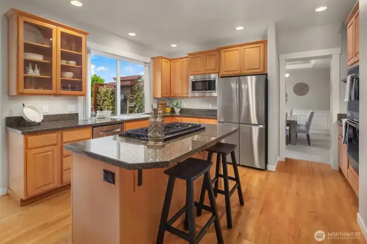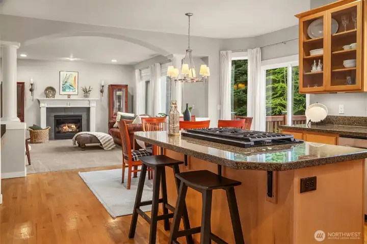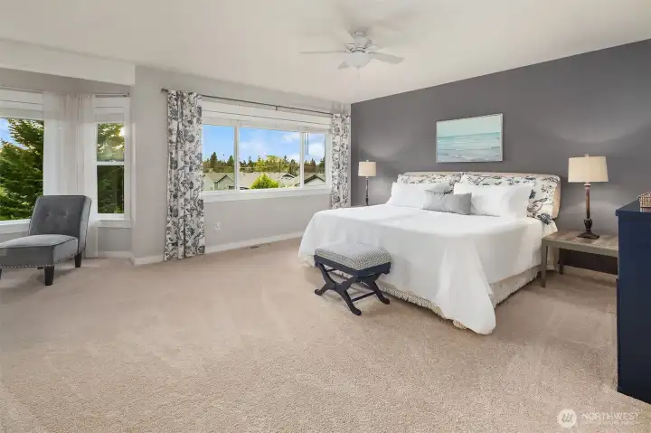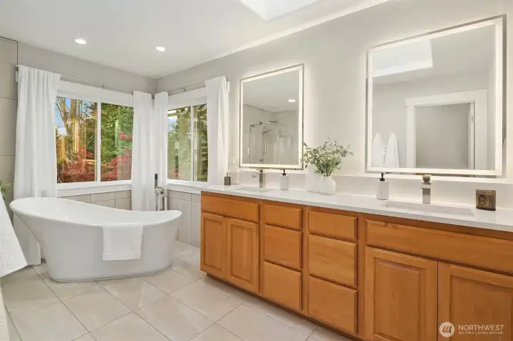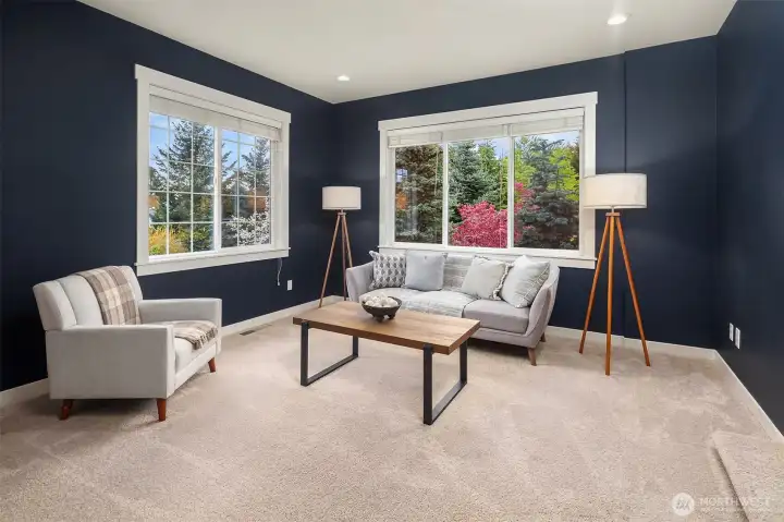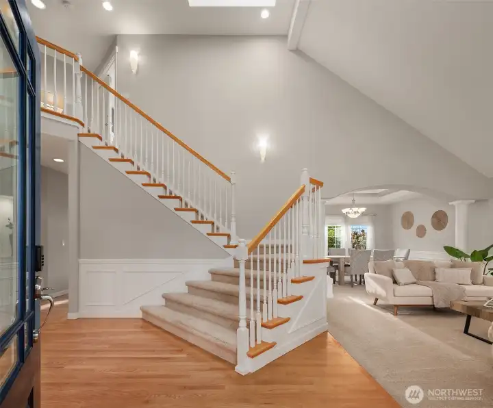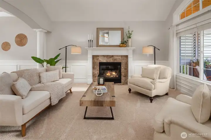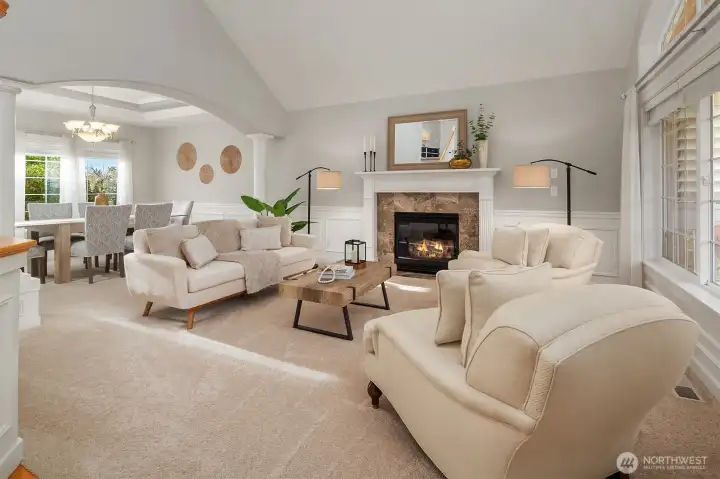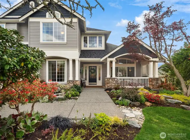Beautifully updated Craftsman home set on a private drive on nearly half an acre in Brier. Light-filled interiors feature vaulted ceilings, hardwood floors, two gas fireplaces, and formal living and dining spaces. The kitchen includes new appliances, maple cabinetry, slab granite countertops, a 5-burner gas cooktop, double oven, and a walk-in pantry. It opens to the dining area and great room, ideal for everyday living and entertaining. French doors lead to a main-level office or guest room. A mudroom connects to the laundry room, which includes a large, tiled shower with bench for added flexibility. Upstairs, the primary suite offers a ventless fireplace and a fully remodeled bath with a curbless double walk-in shower, tile surround, and dual vanity with quartz countertops. An updated hall bath serves the additional bedrooms, and a versatile bonus room completes the upper level. Outdoor spaces include a private yard and expansive deck with territorial, sunset skies, and mountain views from the front. Three-car garage with ample storage. Recent updates include a new roof, new HVAC system, and EV charger. Conveniently located near light rail, shopping, and local schools, with easy access to commuter routes.