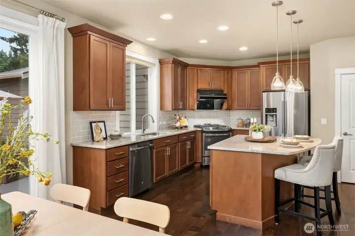 Elevated Luxury in Kirkland: The Masterpiece by Terrene Home. Welcome to Lake Crest, an enclave of four boutique residences perfectly positioned in the heart of Rose Hill. Experience the epitome of modern living in the "Ville de Storia" floorplan—a sprawling, open-concept design crafted for sophisticated entertaining and effortless daily life. The main level invites you in with a stunning living room that flows seamlessly into a gourmet kitchen and breakfast nook with sliding door to the well designed backyard. The main floor also features a formal dining room, a dedicated home office with custom built-ins, and a versatile guest suite. Stepping upstairs to your private primary retreat, boasting a spa-inspired 5-piece bath and dual walk-in closets. Three additional bedrooms, a massive family room, and a convenient utility room complete the upper level. Situated on a quiet cul-de-sac with a spacious yard and a 3-car wide garage with electric car charging. Upgraded features include:Central A/C, Designer Hunter Douglas window blinds throughout. Custom-built closet in the primary bedroom and home office. Brand-new, plush carpeting across the entire home. Premium Huntwood kitchen cabinetry for a timeless finish. Award winning Lake Washington School District. This home combines privacy with ultimate "walk-to-everything" convenience. A MUST SEE!