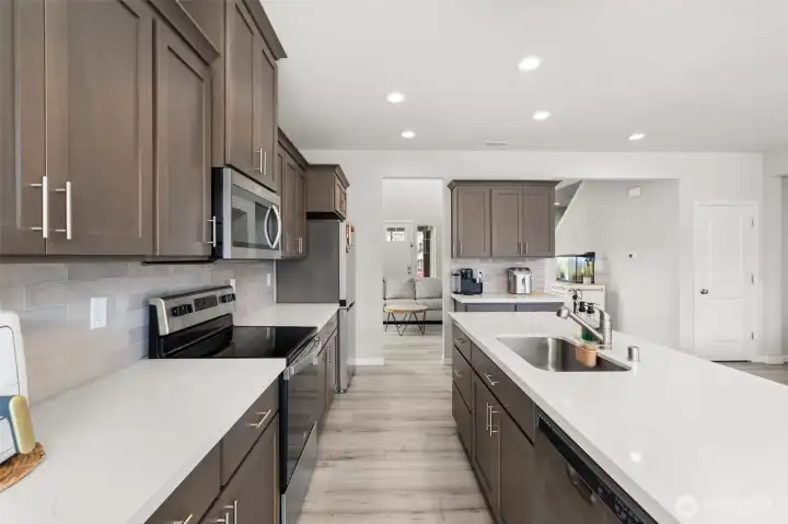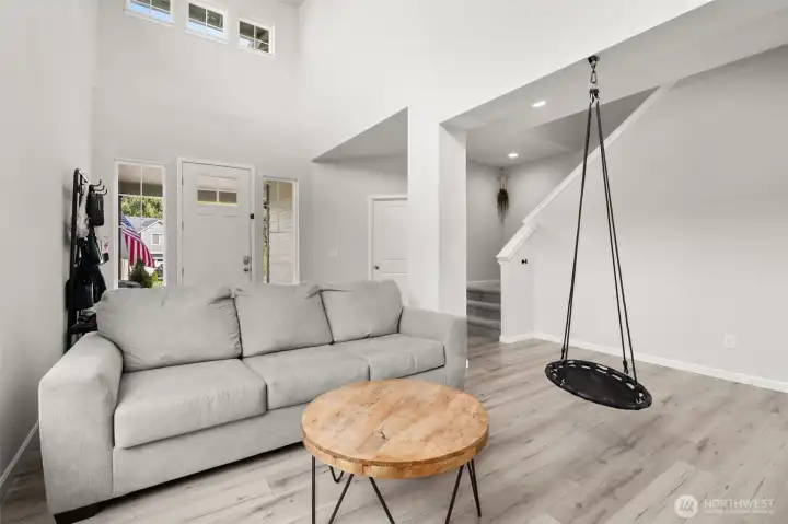 Welcome to Susan Lake Court by Sager Family Homes, a quiet cul-de-sac community of just 16 homes with convenient access to schools, shopping, parks, and I-5 for commuters. This 2,565 square foot home features a functional and inviting layout centered around great room living, with a spacious kitchen and large island that opens to the main living area, along with a formal dining space and an additional flex room on the main floor that works well as a home office or extra living space. Upstairs offers a generous primary suite with an en-suite bath, three additional well-sized bedrooms, a full bathroom, and convenient upstairs laundry. Additional features include high ceilings, a two car garage, and a heat pump with 90%+ efficiency heating and forced air cooling for year round comfort. All stainless steel appliances are included, including the dishwasher, microwave, range, washer, and dryer, making this home move in ready.