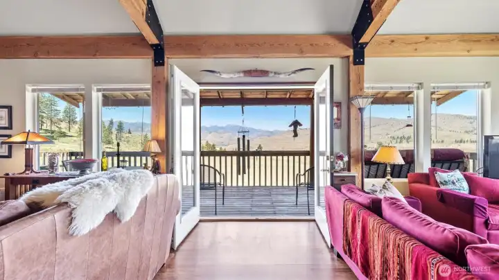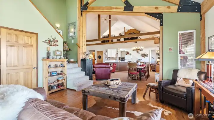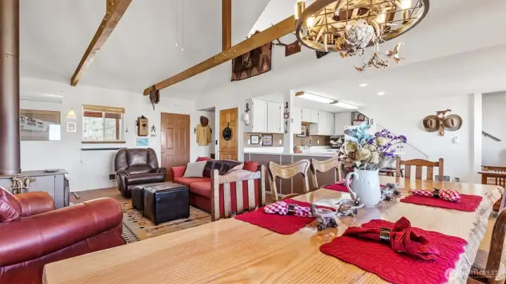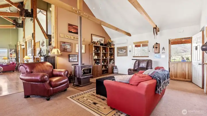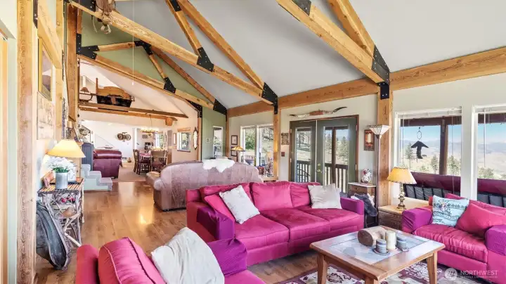 Live like someone left the gate open on 68 acres of soul-soothing privacy. This fully furnished retreat is being sold turn-key & features 3 living spaces, bonus sleeping quarters, & an enchanting creative shed. Sleeps 22 people! Vaulted ceilings & locally milled fir bring warmth, while a metal roof & updated windows add lasting value. Lounge beneath stars with 360° views, hear only bees & birds, harvest raspberries, apples & more from your own land. A winding drive leads through wildflowers to this peaceful, rental-friendly haven with no restrictions. Perfect as a retreat center, legacy property, or quiet life in full color.