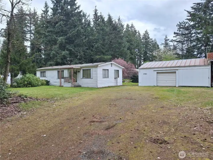 HALF-ACRE OPPORTUNITY IN MAPLE VALLEY! Spacious, level, and fully fenced, this exceptional lot in the sought-after Tahoma School District offers endless potential. The property includes a livable 2-bedroom, 2-bath manufactured home—comfortable as-is or ready for your vision. Inside, you’ll find a functional layout featuring a generous kitchen with peninsula and pantry, a spacious living room, and flexible additional space ideal for dining, a home office, or sitting area. The primary suite includes an attached bath with a large soaking tub and separate shower. Step outside to a deck overlooking the backyard. Car enthusiasts, hobbyists, and outdoor lovers will appreciate the incredible parking and workspace options. The shop accommodates two vehicles, including a horizontal sliding door for larger access, plus a dedicated workspace area. An extra-tall carport provides ideal covered storage for an RV, boat, or additional equipment. The true standout is the land—flat, usable, gated, and ready for your plans. Move in, rent out, or build your dream home in this prime Maple Valley location.