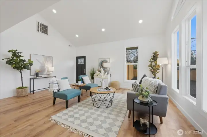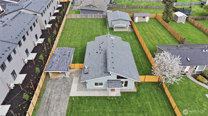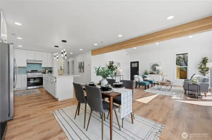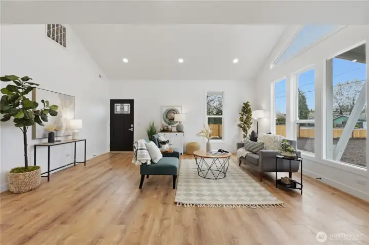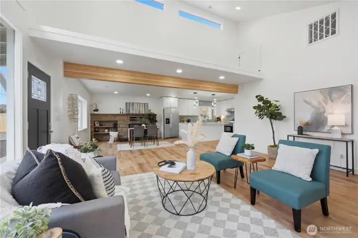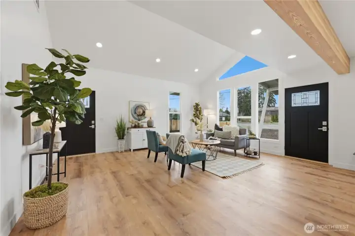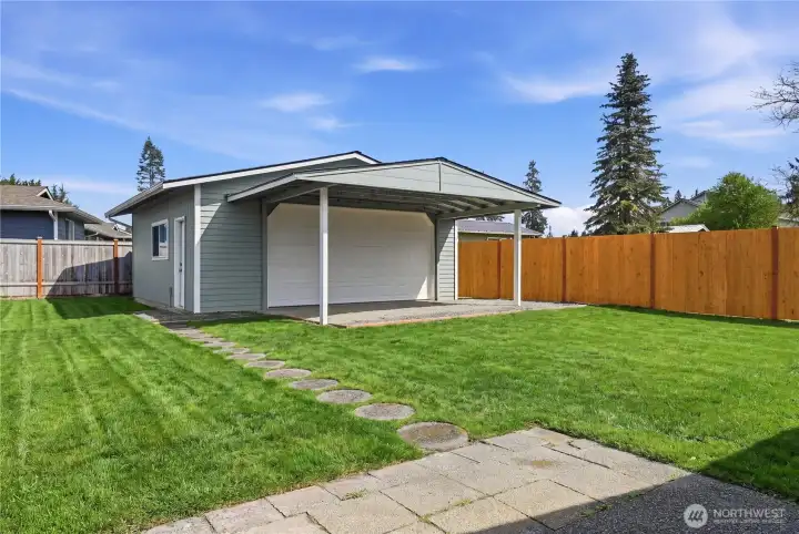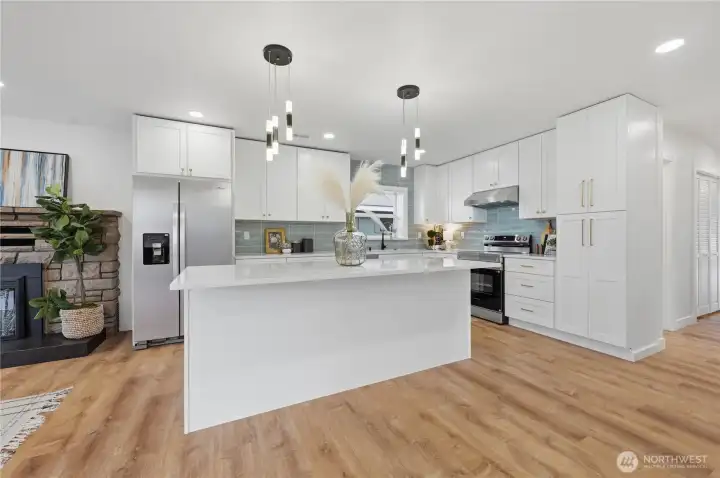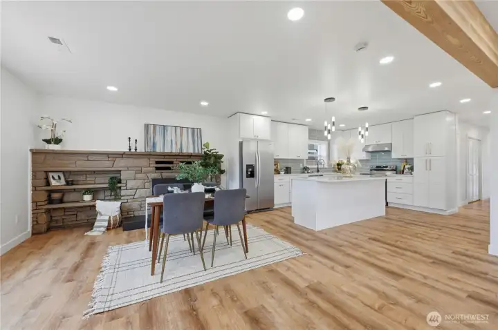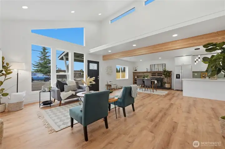 Welcome to your newly remodeled home on an expansive lot in the heart of Marysville. Offering better quality and value than new construction! The open-concept layout features half-vaulted ceilings, luxury vinyl plank flooring throughout, and a brand-new kitchen with wood cabinetry, quartz countertops, and stainless steel appliances. A stylish electric fireplace by the dining area adds warmth and ambiance to the main living space. The primary suite includes a spacious bedroom, desk area, walk-in closet, and a 5-piece ensuite with heated tile floors. Two additional bedrooms, a full bath, and a new washer and dryer complete the interior. The home has been completely remodeled — new roof, electrical, plumbing, windows, insulation, drywall, lighting, and a new furnace with A/C. Recently connected to city sewer, with a new fence and fresh hydro seed. Outside, a detached garage plus a carport with its own separate meter, EV charging plug, and excellent DADU or mother-in-law conversion potential. Conveniently located near parks, restaurants, shopping, and everything the growing city of Marysville has to offer! Come see this today!
