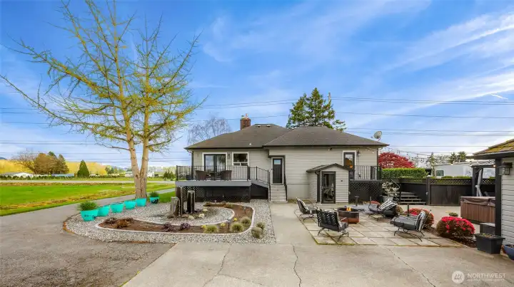Rare opportunity to own a beautifully remodeled home in a sought-after area of Mount Vernon where properties seldom come available. Surrounded by picturesque farms and iconic tulip fields, this level 1-acre property offers the perfect blend of privacy and proximity to town. The fully updated home retains all the charm of the past, combined with the contemporary elements that create comfort and style. This light-filled home features 4 bedrooms (or 3+ office) and 2 baths, including a spacious primary suite with a spa-like bathroom, its own dedicated water heater, and private deck access. Hardwood floors and a cozy fireplace add warmth and character, while the finished basement provides flexible space for a bonus room, family room, laundry, and storage space. The recently upgraded septic system is four bedroom, providing opportunity for expansion or ADU to fit your needs.Outdoors, enjoy thoughtfully designed spaces ideal for relaxing or entertaining, complete with a hot tub and unique grafted fruit trees in the backyard - including six apple trees, two cherry, two pears, and two plum trees. Perfectly level lot has plenty of space for a garden or pasture. The impressive 30’x30’ lofted barn with 12’ overhead door and power service is perfect for RV/boat storage, hobbies, or projects. Detached 2 car garage has 220 power. Take in peaceful views from the deck and experience the best of Skagit Valley living.