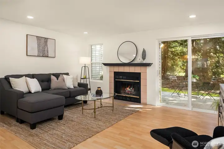 Great entertainment flow with a slider to a patio and backs to green belt.