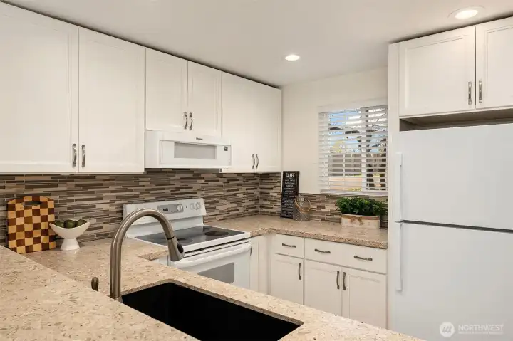 Modeled kitchen with quartz counters, newer cabinets, updated lighting - just turn key!