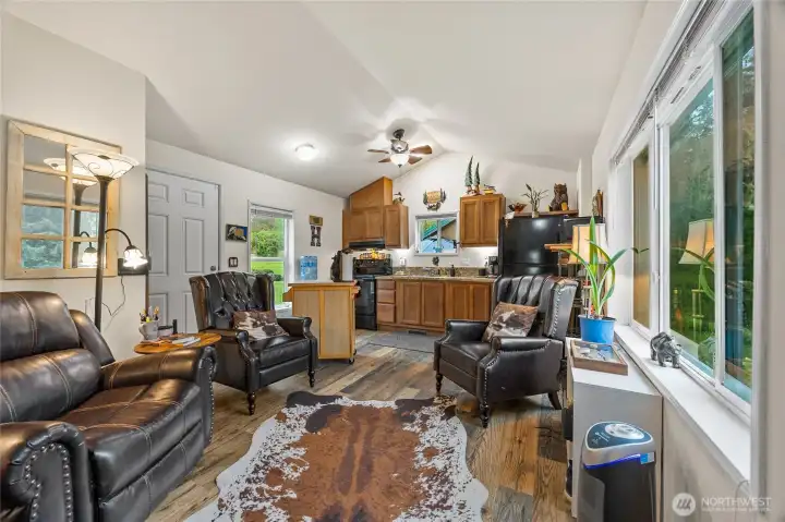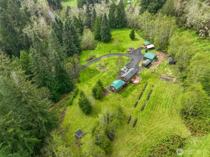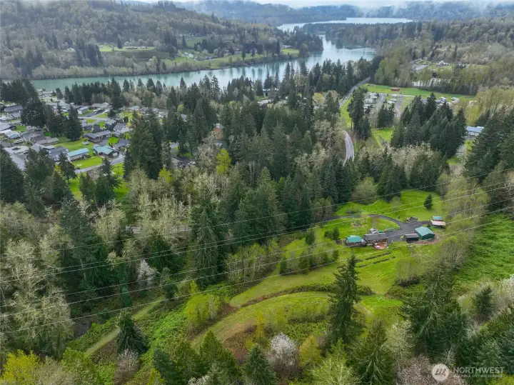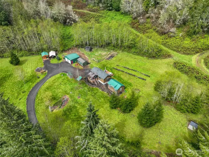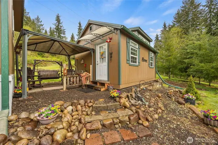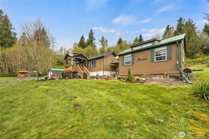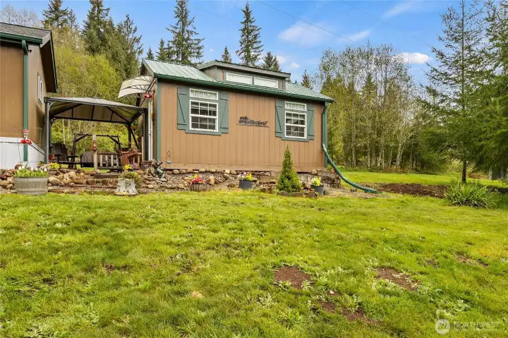 This one is a fun opportunity! If you are considering downsizing your acreage, retiring or looking for a weekend getaway near the lake this country retreat might be for you. This newer home has a reduced footprint for efficient living and sits on 5.48 acres of privacy. There is a bonus guest building that expands potential living space housing a bedroom and a 1/2 bath to provide additional privacy for your guests. Additionally, there is a two bay shop/storage building for tractors and toys. Another feature of this property is a charming homestead designed building for craft projects or sitting on the covered porch and relaxing. A public boat launch is just a mile or two away offering expanded recreational options or the chance to catch a few fish for dinner. The manageable private acreage offers expandable living space, a garden area, a dog run, and a chicken house all close to the lake and only 20 minutes to I-5. Buyer to verify all.