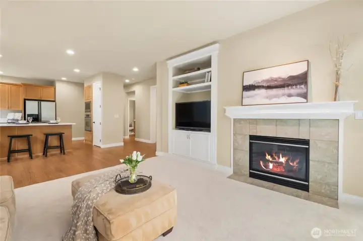 Family room is open to the kitchen and next to the dining room. The ideal layout for entertaining.