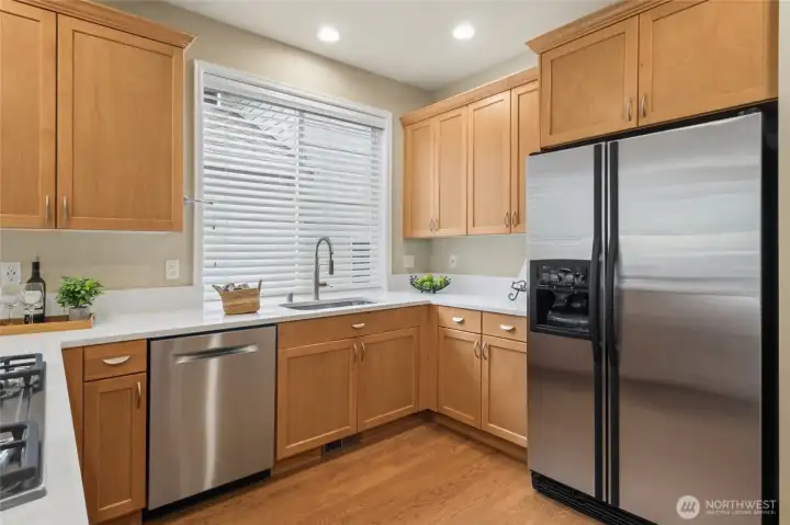 Dream kitchen features quartz counters, dining bar and stainless steel appliances