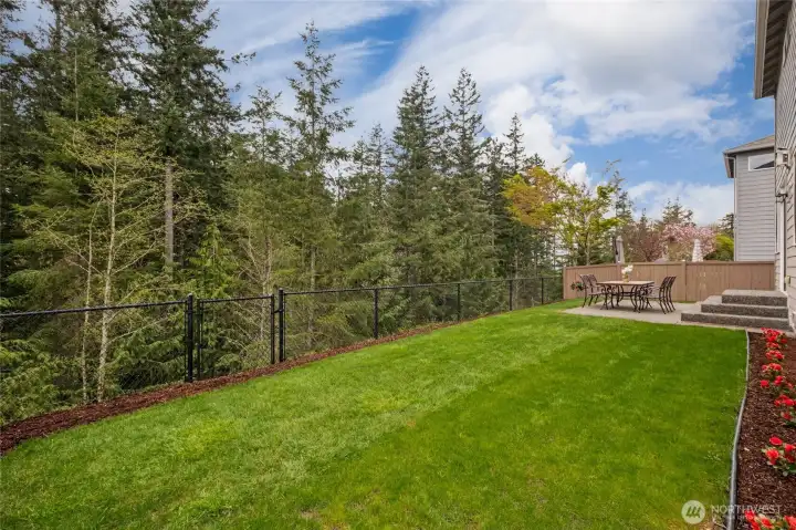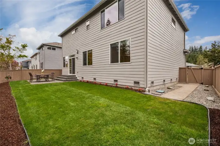 Fully fenced yard backs to a lush greenbelt for privacy and the entire yard is covered by an automated sprinkler system for easy maintenance