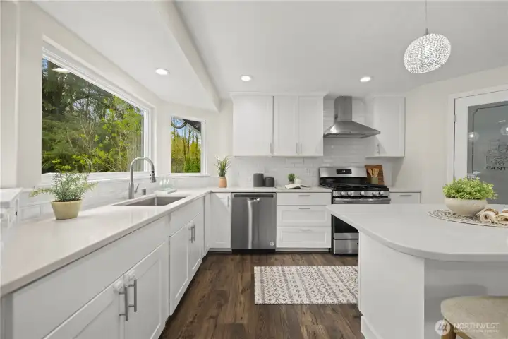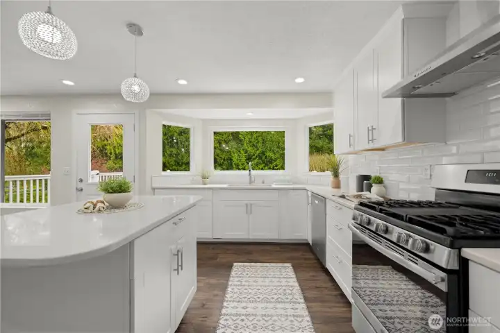 Beautifully updated kitchen with all the modern amenities, walk in pantry and gas stove