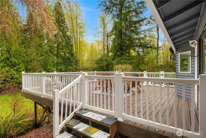 Discover the perfect blend of privacy, nature, and versatility with this stunning 3-bedroom home with studio and bonus spaces, set on over an acre of beautifully landscaped grounds. The main level offers a spacious living room, modern kitchen, generous dining space, 3 bedrooms, and two bathrooms. The primary suite is a true retreat, featuring a luxurious ensuite bath and a walk-in closet. Upstairs, you’ll find an incredibly versatile studio with an attached bonus room, second kitchen, and ¾ bath. With a separate entrance, this space offers endless possibilities—expand your living area, create a private guest suite, rental opportunity, or in-home business (previously a dance studio). Recent updates include a new roof, fresh interior paint, and new carpet, making this home move-in ready. Enjoy the expansive composite deck overlooking your private acreage—perfect for entertaining or simply relaxing in nature. Mature trees, lush plantings, and cherry blossoms line the walkways to create a picturesque, park-like setting. Additional features include a large detached shop /garage (recently used as a home gym), plenty of off street parking for cars, RV or boat!