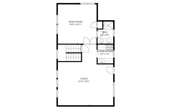 Upstairs studio space. Connected to the home via interior stairway AND has second exterior entrance. So many options!