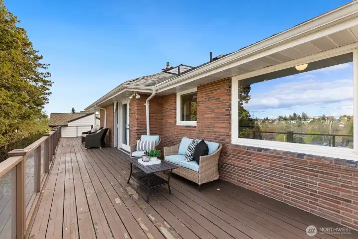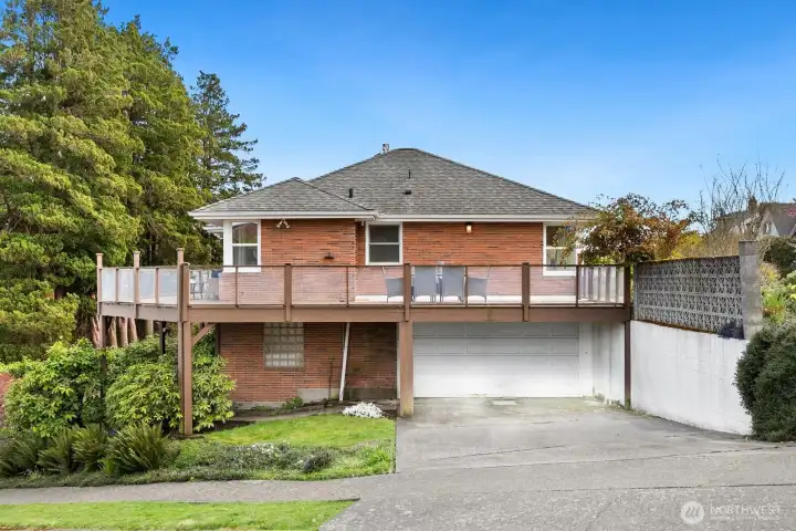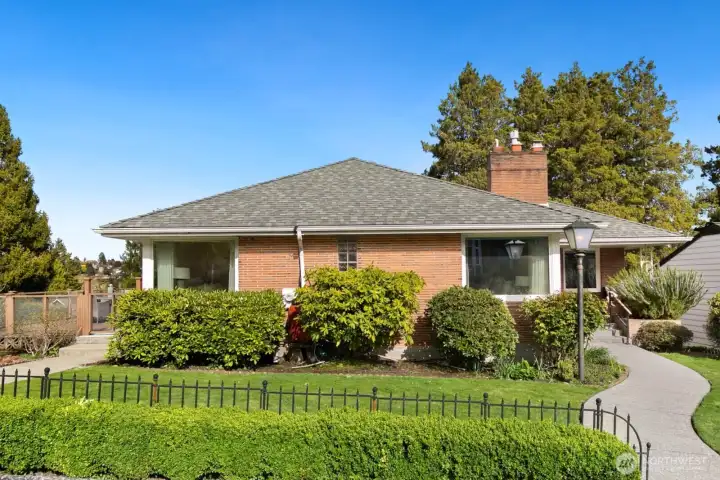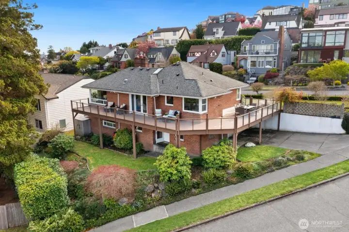 With a quiet elegance, this classic Roman brick mid-century presides proudly over its large corner lot, just a few blocks from the center of Magnolia Village life. So easy to grab coffee with friends, squeeze in a quick game of pickleball/playground time, and grab veggies at the summer Farmers Market. Then home to enjoy a relaxed, indoor-outdoor lifestyle as roomy living and dining spaces flow effortlessly to a large wrap-around deck. Plenty of space to entertain in the large living room with lovely fireplace & large picture windows framing sylvan outlooks. Formal dining rm, with French doors out to the deck, is ready for memorable dinner parties & everyday celebrations. Light & airy eat-in kitchen, w/dutch-door to the spacious, sunny deck area- your summer dining room & party plaza. Two large dreamy bedrooms round out the main floor. The fully utilized, walk-out lower level offers abundant space to enjoy & a flexible floorplan. The 4th BR provides use as a serene & luxuriously large bedroom with fireplace & walk-in closet or a fantastic family/media room, accommodating your needs over time. Large 2car garage w/additional driveway pkg and near level entry from both levels makes life a little easier. The perfect location to enjoy the community amenities of Magnolia, with easy access to DT Seattle & SLU.