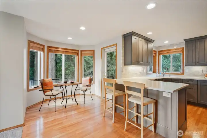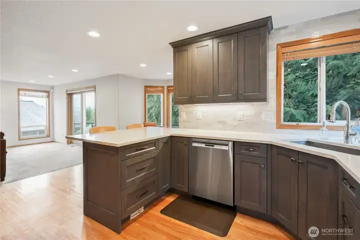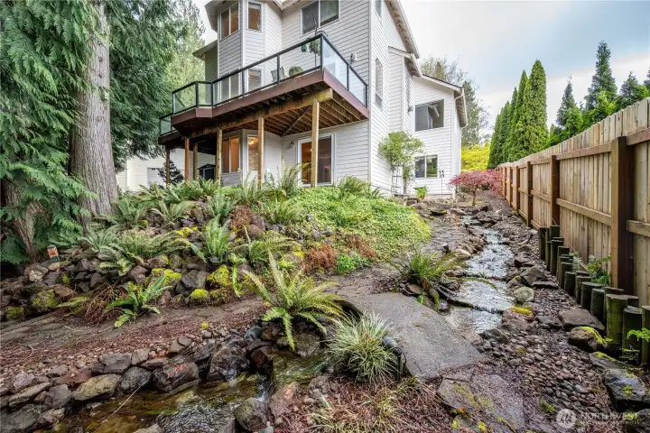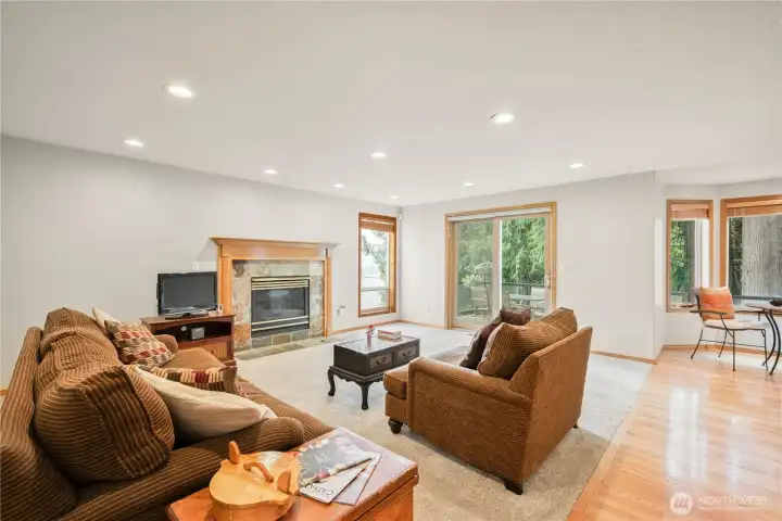 Welcome to this beautiful hillside home with wonderful street appeal and 3300 square ft. of thoughtful living space! Walk through the professionally landscaped front yard (with sprinkler system), directly into the open main floor featuring a quiet sitting area with peak-a-boo views, open stairwell and formal dining space. Continue to the great room featuring a gas fireplace and access to a deck for your summer meals, informal eating nook and beautifully updated kitchen with quartz countertops, beautiful backsplash, stainless appliances and a wall of pantry cabinets. You'll also appreciate the full bathroom on this floor! Upstairs is the primary bedroom with lovely view, updated ensuite and large walk-in- closet, plus two nice sized bedrooms with a private Jack-n-Jill bathroom. More living space awaits in the walk-out basement with two additional bedrooms (or offices), a full bath, and family room with second gas fireplace. Also on this floor is a flex space, for hobbies or perhaps a kitchenette! The large, wooded back yard is a private, low maintenance retreat but could be cleared for more usable space. A peaceful water feature connects the front and back yards. This home sits quietly on a private cul-de-sac and was featured in Longview's Parade of Homes! Don't miss this one!