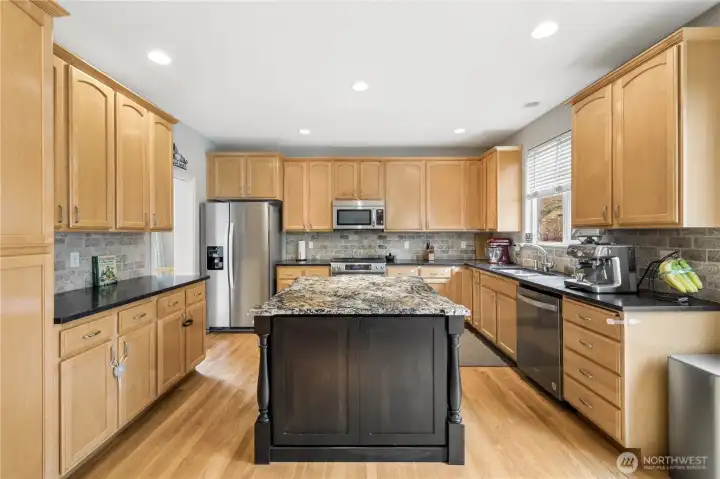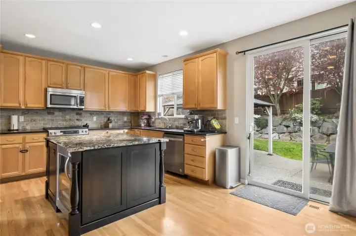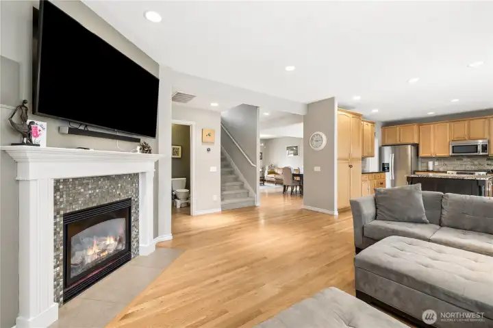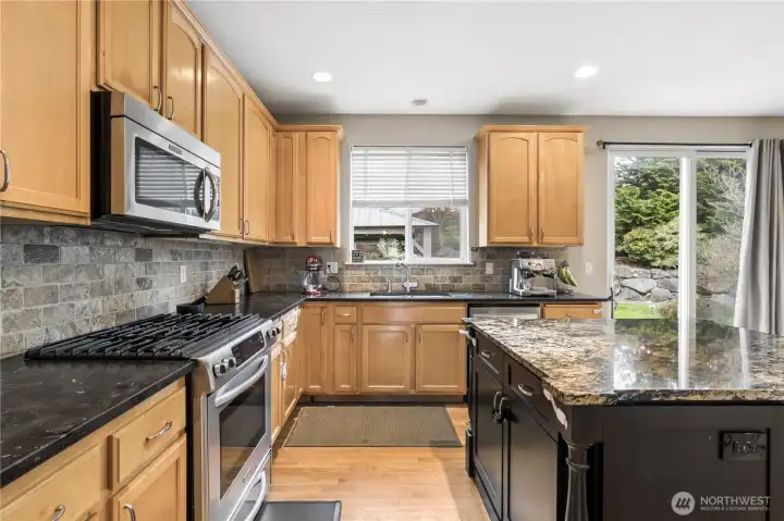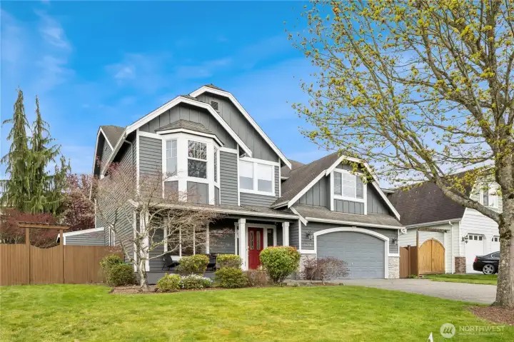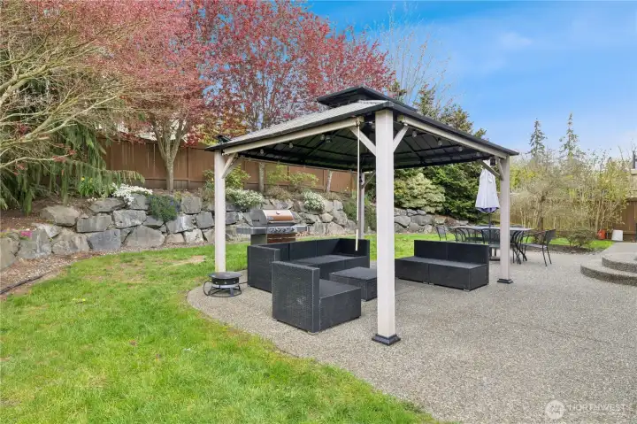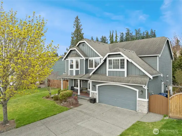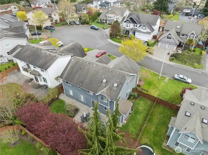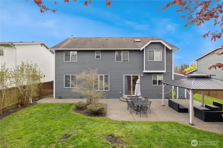 Great opportunity to live in Mukilteo's Highland Terrace cul-de-sac neighborhood, just minutes away from a myriad of parks, trails, and beaches including Goat Trail Park, Lighthouse Beach Park, and the Japanese Gulch Trailhead. Convenient Mukilteo Ferry and WA-525 access. Enter this gorgeous two-story to an open living space with beautiful hardwood floors, formal living and dining rooms, plus spacious family room with gas fireplace and large kitchen with stainless steel appliances, center island, and ample storage. All appliances stay. Slider from kitchen to backyard entertainment patio with gazebo for easy al fresco dining. Main floor is completed by a bonus room/office, utility room/mud room, plus a powder room. Washer and dryer stay. Upstairs find four bedrooms including the large primary suite with vaulted ceiling, bay window, two walk-in closets and ensuite five-piece bath. Fourth bedroom is extra-large and can easily double as a home gym or additional office space. Full guest bathroom. Fully-fenced backyard. Two-car attached garage.