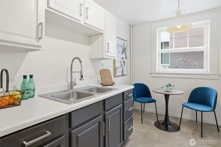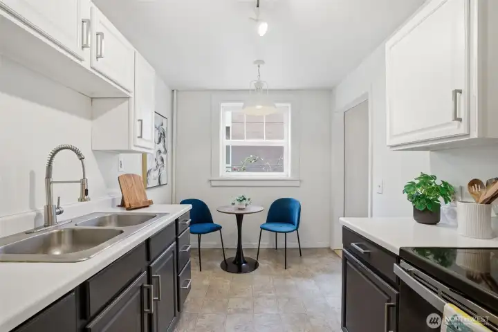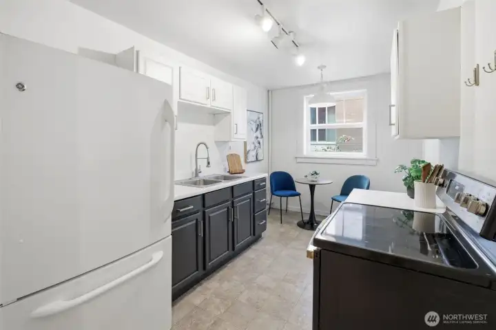 Practical kitchen with easy room for customizing.