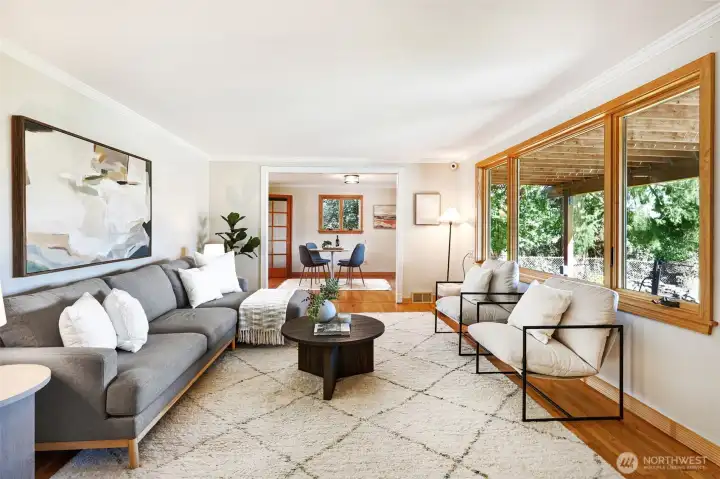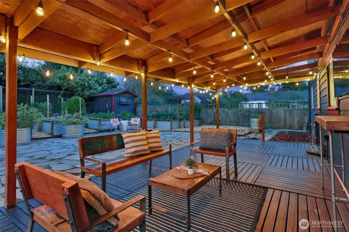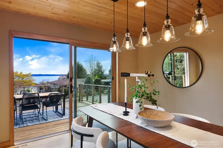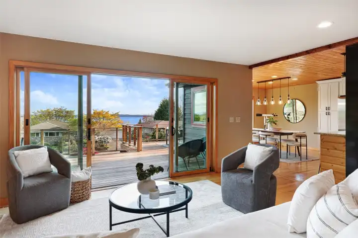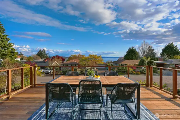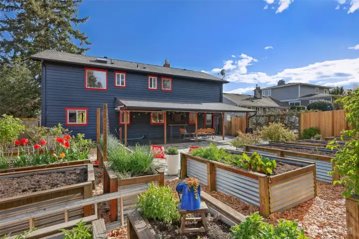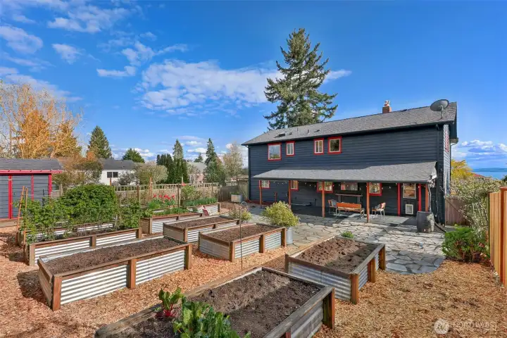 Discover the perfect blend of Northwest living and backyard sustainability in this Arbor Heights home with wireless Puget Sound and Mt. Rainier views. Designed with a reverse floor plan to maximize light and scenery, the upper level features an open-concept layout with custom finishes, striking thoughtful details, a spacious kitchen and dining area, and easy access to a large view deck. The primary suite with walk-in closet, a third bedroom, and a powder room complete this level. The entry floor offers exceptional flexibility with a generous family room, two versatile flex spaces, a bedroom, and a 3/4 bath. This is a place that is ideal for guests, remote work, or hobbies. Outdoors, the property transforms into a true gardener’s paradise. Enjoy plentiful raised vegetable beds, established fruit trees, berry patches, a chicken coop, garden shed, and even a tranquil pond. An inviting outdoor entertainment area is set up for an open-air kitchen and game-day viewing with space for a TV, creating the ultimate gathering spot. Private, peaceful, and surrounded by nature, yet just minutes from everyday conveniences. This home truly has it all.