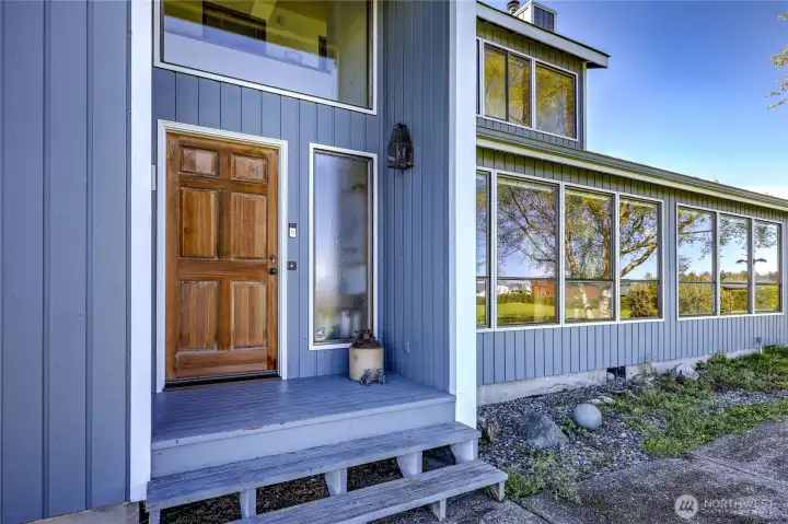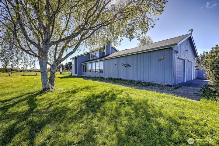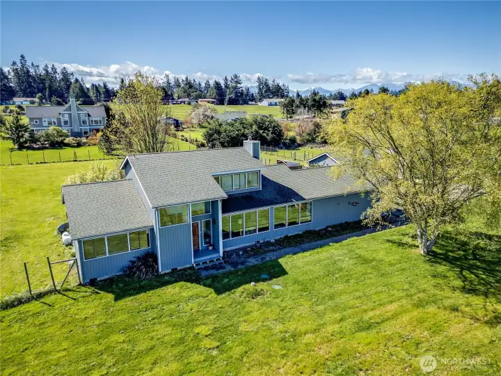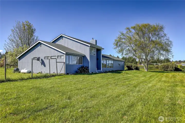 Set on 2.5+ private acres in the desirable Sequim area, this spacious 3 bed, 2 bath home offers over 2,000 sqft of comfortable living with a peaceful south-facing 600sqft enclosed patio. Tucked away at the end of a quiet road, the level property provides exceptional privacy while still being conveniently located. Inside, you’ll find vaulted ceiling entryway, a generous living area, and expansive windows that capture beautiful water views. The kitchen features abundant cabinetry, large pantry and ample prep space, and flows seamlessly into the dining area. The primary suite includes a walk-in closet and en suite bath and shower, while additional bedrooms offer flexibility for guests, office, or hobbies. Enjoy spacious south facing sunroom with plenty of room to spawl out including a built-in spa. Property highlights include attached and 768sqft detached garage spaces, shop and a 400sqft outbuilding with a garage door. Partially fenced grounds—perfect for animals, gardening, or creating your own mini-homestead. With private well, septic, and forced air heating, this home blends functionality with rural charm. A rare opportunity for space, versatility, and serene Peninsula living. Offering access to lavender farms, hiking trails, beaches, charming downtown shops and dining, plus access to the Olympic Mountains & Strait of Juan de Fuca.