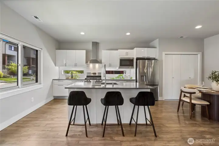 Modern elegance meets practical convenience—your dream home awaits! Tucked away in a neighborhood where sidewalk-lined streets lead the way to the community park & play set down the road. Offering quick & easy access to city amenities, commuting ease & outdoor adventure, here you really can have it all. Generous floorplan includes 3 floors brimming w/versatility, & ready to evolve as your wants & needs change over time. Embrace open-concept main level living; relax & host in style in living room & dining room. Enjoy culinary exploration in the impeccably appointed kitchen. Lower level features bonus room w/ 3/4 bath and access to covered patio. Upper level boasts family room & expansive primary suite getaway complete w/spa-inspired ensuite bath & huge walk-in closet. Garage expands your possibilities w/room for storage & projects. Home offers ample space to set up the home office, gym, or hobby room you’ve always wanted! Connect w/nature in fully fenced backyard, lined w/forested beauty for a sense of seclusion, while sprinkler system keeps everything looking lush. Scenic Clark Lake Park down the road features trails, fishing, idyllic setting; get lost in the PNW’s natural beauty without having to travel far! Opportunities for swimming, boating, golf & more just 5 min away. Extensive options for shopping, dining, services, entertainment, etc. all less than 5 min from home, too! Close to HWY 167, I-5, SeaTac Airport, & 30 min to Downtown Seattle or Downtown Bellevue.
