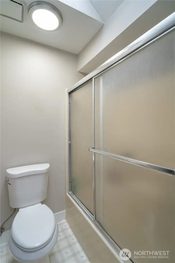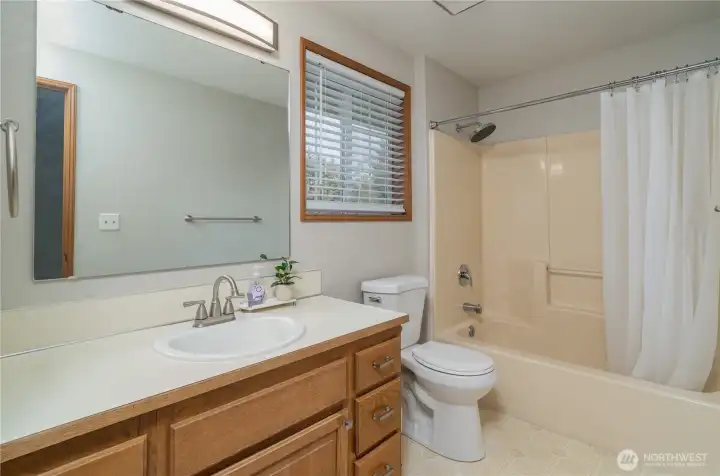 Vaulted Living room with wood burning fireplace and upgrade rich laminated floors
