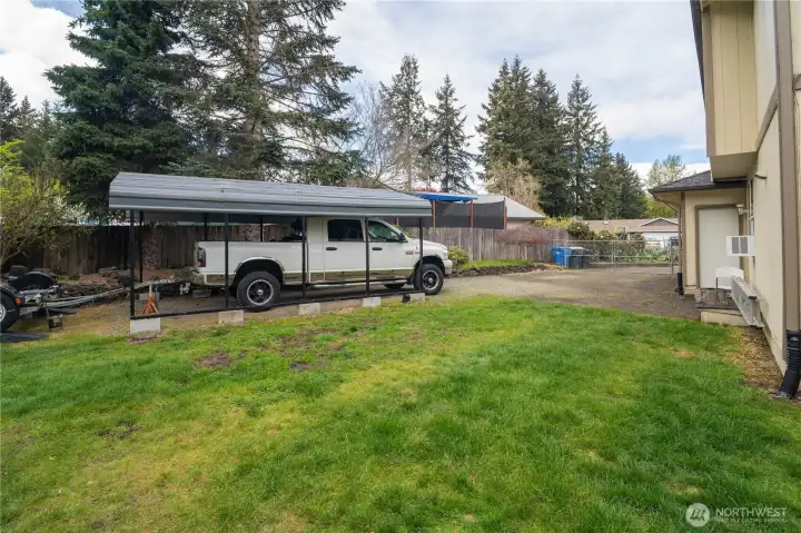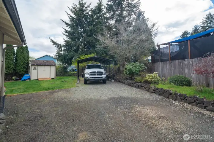 Front of the home, lots of parking plus detached covered parking in backyard.
