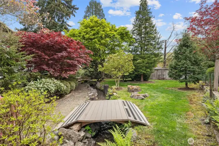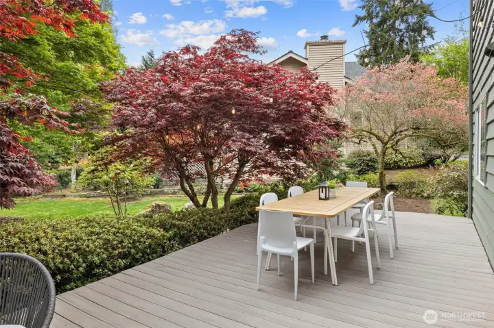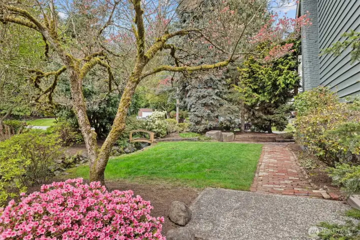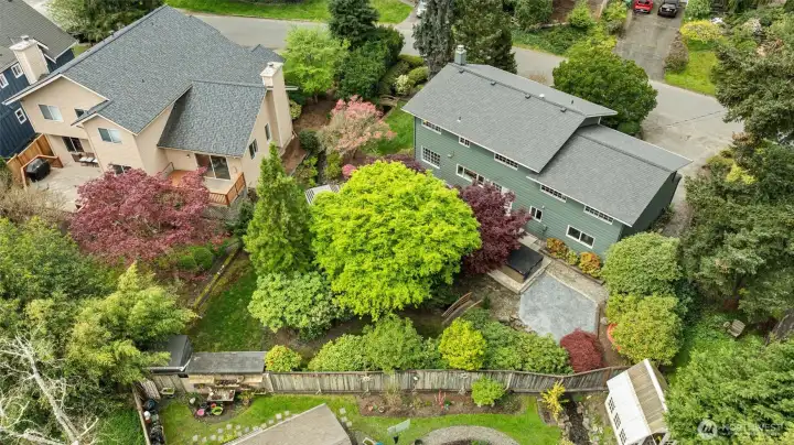 Mature landscaping provides shade on those hot days.