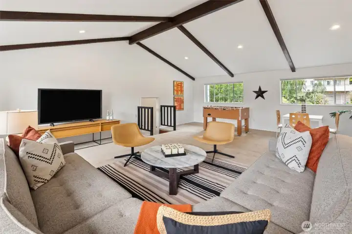 vaulted bonus room creates the perfect flex space for media room, playroom or work out space