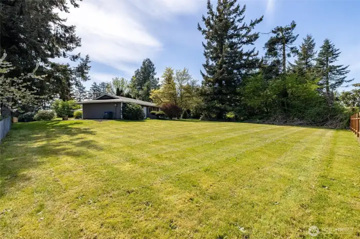 Partially fenced expansive yard.
