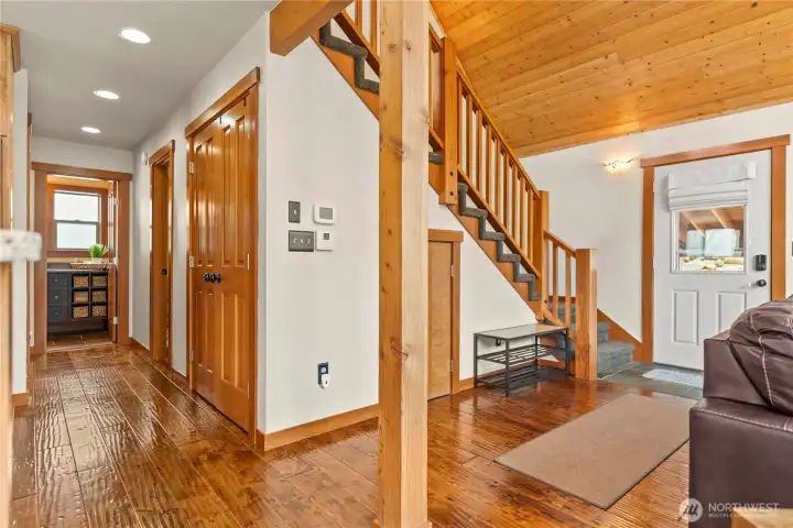 Main level great room, kitchen, pantry, bathroom and primary bedroom.