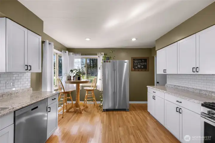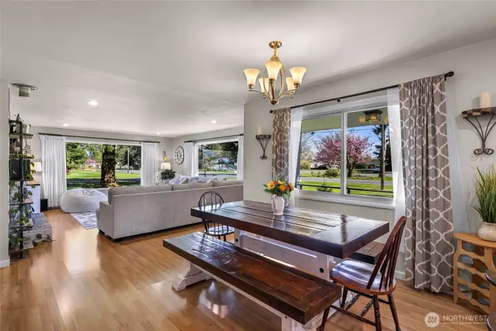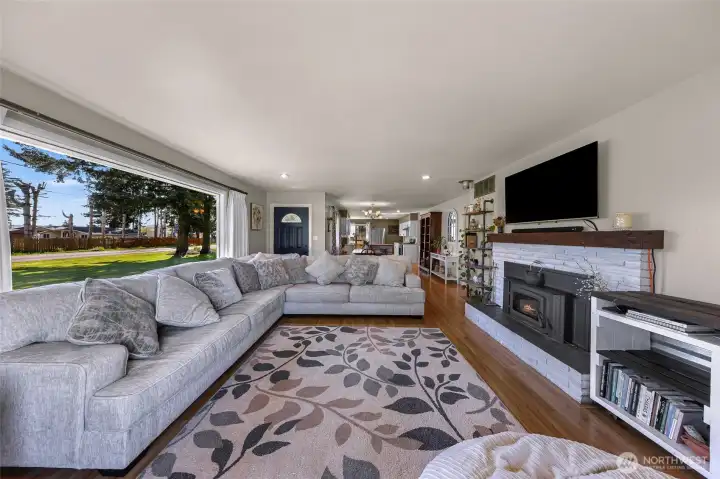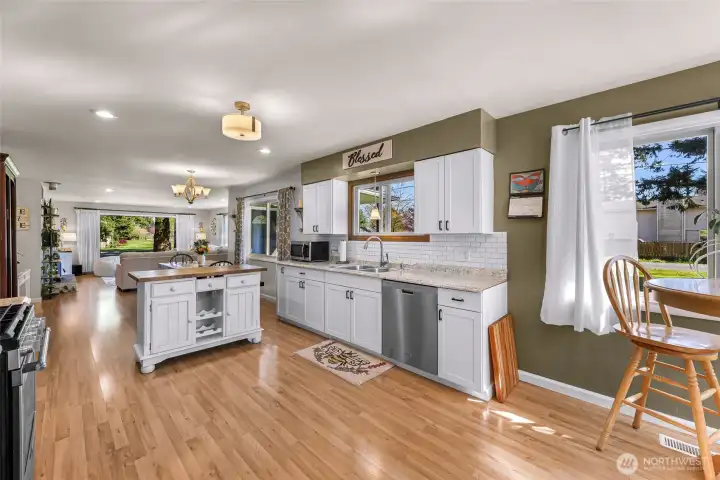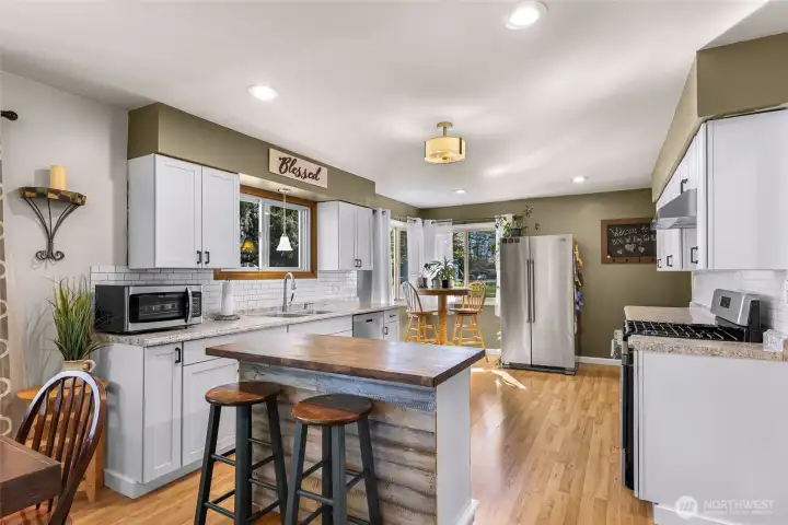 We are pleased to announce a new property available in North Bellingham. This renovated mid-century, one-level home is situated on nearly one acre and includes an expansive four-bay shop.The open floor plan residence has undergone significant updates, including a modest kitchen and bathroom renovation, a new high-efficiency fireplace insert with a chimney liner, and new carpeting in the bedrooms. Additionally, the mudroom has been updated with new cabinetry, and the garage has been converted into a finished space with drywall and flooring, adding over 500 square feet of living area.The property also features a remarkable four-bay shop with a new roof, gutters, siding, flooring, lighting and fireplace/heat, perfect for your hobbies, cars, toys and more. The grounds include a magical fenced garden area with Rainier cherry, Honey crisp, and Cosmic crisp apple trees, asparagus, artichoke, blueberries, raspberries, a greenhouse, and a chicken coop. Ample parking is available, including a designated RV spot with a 30-amp outlet.Located centrally between Bellingham, Ferndale, and Lynden, this property offers a rural atmosphere with convenient access to nearby amenities.