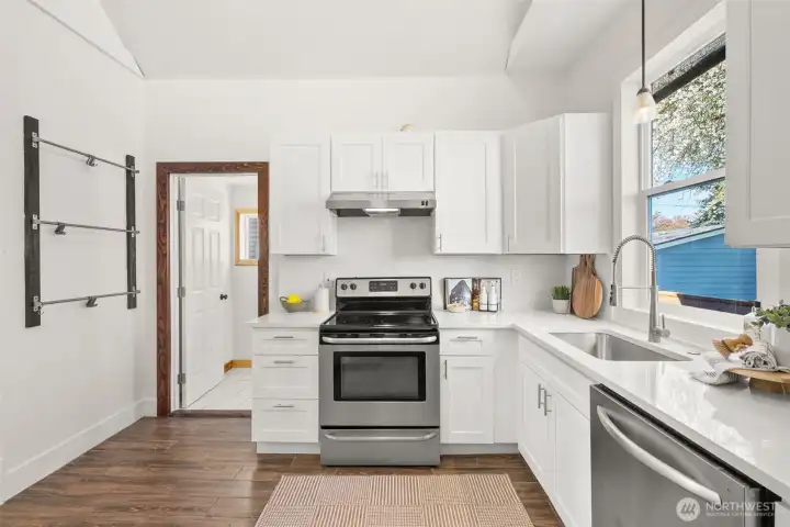 Set in Tacoma’s 6th Ave district, this 3-bedroom home puts you just blocks from restaurants, parks, and neighborhood favorites, with quick access to Highway 16 when you need to get across town. With more than 1,600 square feet, the home has a bright, airy feel thanks to tall ceilings on both floors and large windows throughout. The bedrooms are generously sized, with proportions that feel right from room to room. Original hardwoods run through most of the home, adding warmth and character. A main-level half bath and full laundry room add to the home’s functionality. The kitchen was remodeled in 2026 with 3cm quartz countertops that extend as the backsplash, along with soft-close cabinets and drawers for a clean, finished look. The home also features a new roof and fresh interior and exterior paint, completed in 2026. Plumbing and electrical have also been updated. Outside, the property is nearly fully fenced and offers a covered front porch, rear deck, and dedicated off-street parking via the alley. Pre-inspected, well-maintained, and turn-key, this home has been thoughtfully improved and clearly cared for. With strong curb appeal and a location that puts Tacoma’s best amenities close at hand, it is a compelling option for anyone seeking affordable city living without sacrificing style or condition.