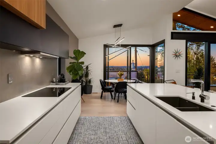 This contemporary gem was built from the ground up in 2019 and showcases a reverse floor plan that captures sweeping NE-facing views of both Lake Union & Lake Washington, Gasworks Park, Ballard, Kirkland, Mt. Baker & the Cascade mountains. Unparalleled privacy and solitude. The great room features floor-to-ceiling windows and offers an open-concept space boasting a chef’s kitchen and spacious living area that opens to a balcony & view deck. The bedroom level offers 4 serene bedrooms, including a primary suite with a lavish bath. The lower level, versatile for entertainment or as a guest suite, opens to a fully enclosed backyard. Two attached single-car garages as well as 3 additional off-street parking spaces.