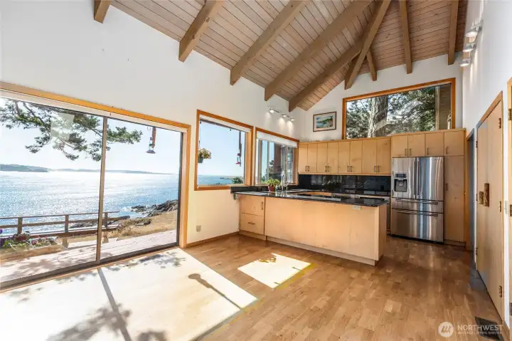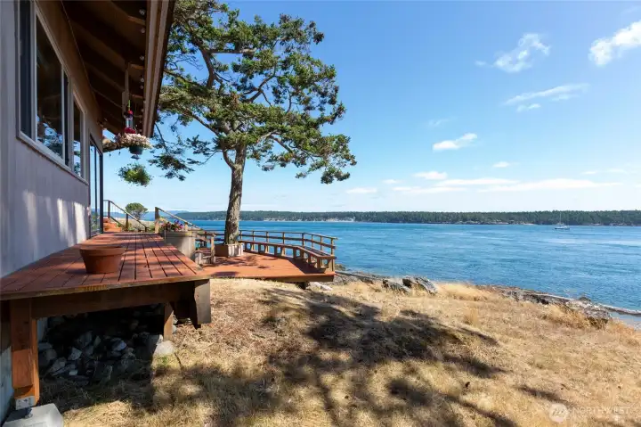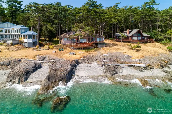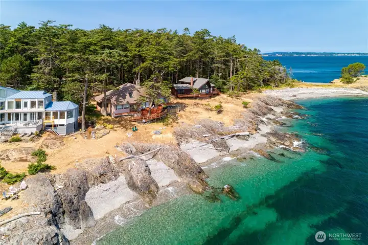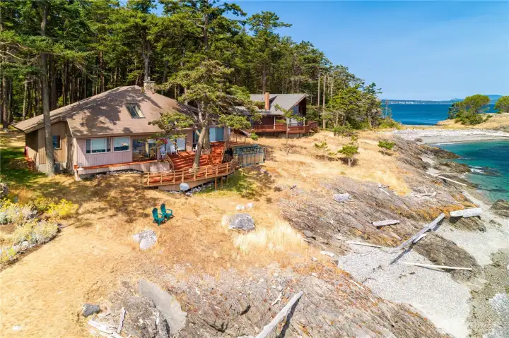 Nestled at the water’s edge, this custom 1984 Northwest Contemporary home offers breathtaking views and direct access to your own private pocket beach—perfect for launching a kayak right from your front yard.Featuring 2 bedrooms, 2 bathrooms, and 1,985 square feet of thoughtfully designed living space, this home includes a cozy stone fireplace in the living room for those chilly winter days. Enjoy watching boating traffic and marine life, including majestic orca whales, from the comfort of your home.The updated kitchen boasts granite countertops, a walk-in pantry, and hardwood flooring. The main level includes the living and dining areas, as well as the primary bedroom, offering convenient single-level living.Upstairs, a light-filled loft provides a versatile space for an office or an open-concept guest bedroom.Located in a vibrant community with walking trails, beach access, a marina, and a pool with a playground. Just minutes from American Camp National Park, where miles of scenic trails await.Don’t miss this rare opportunity to live the ultimate island lifestyle!
