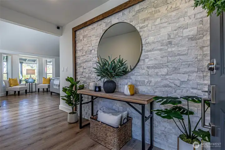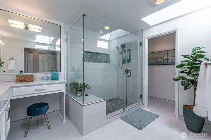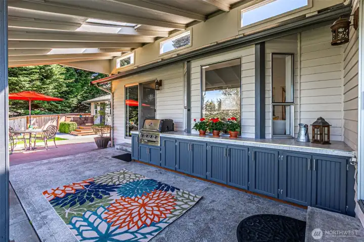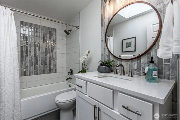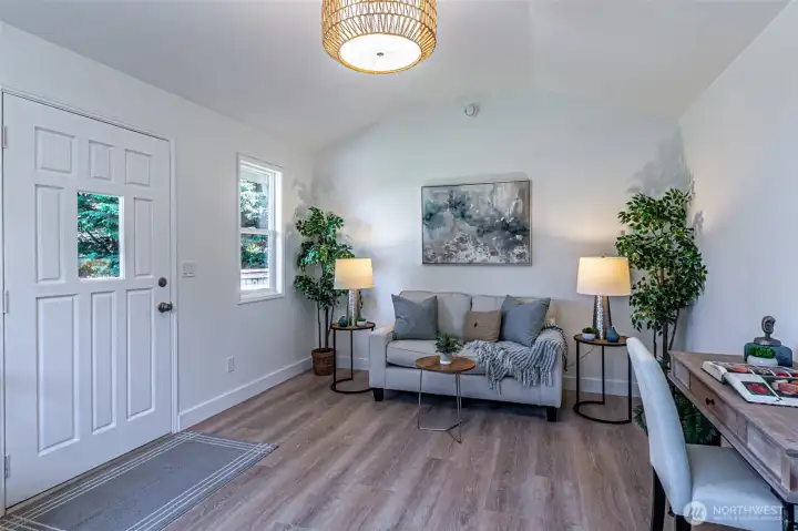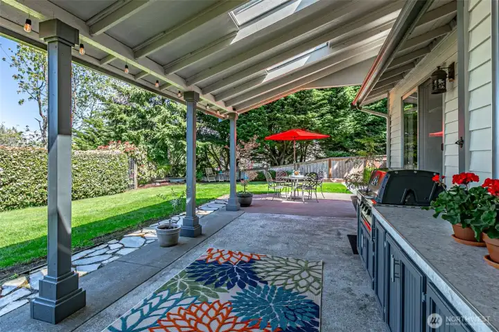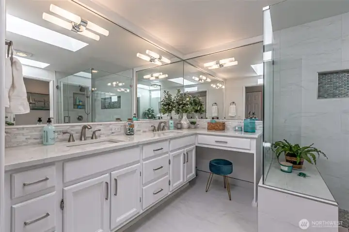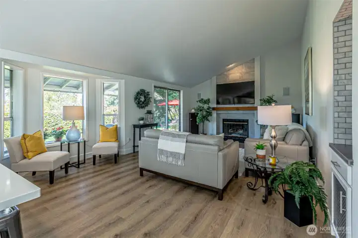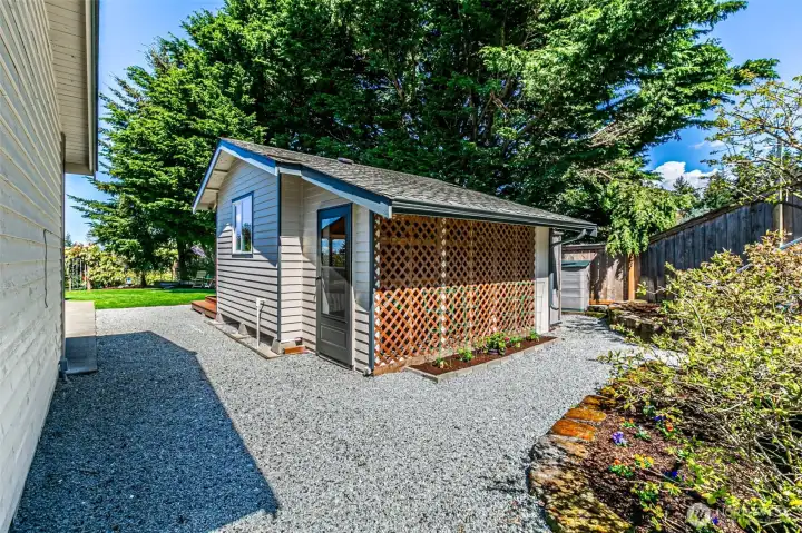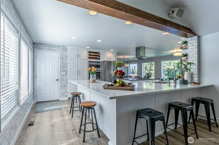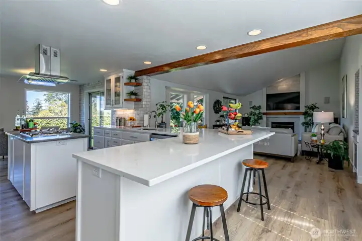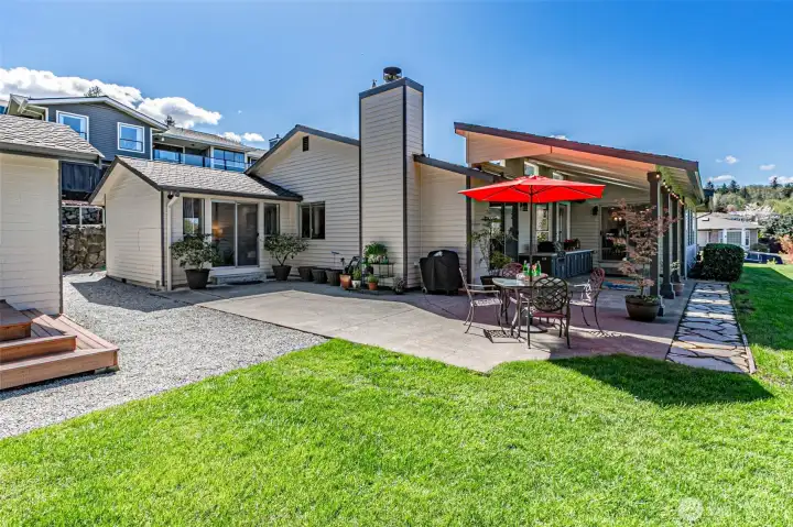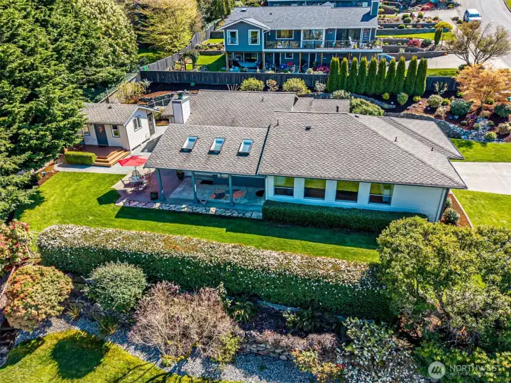 Absolutely Stunning, fully remodeled Dash Point Estates Rambler, blends style, comfort, & modern elegance. Tastefully designed w/an open-concept layout, this home showcases custom finishes thru-out w/no detail overlooked. The Chef's Kitchen features quartz countertops, natural marble walls, & stainless steel appliances w/a cozy breakfast nook, plus a formal dining area that comfortably seats eight, all flowing seamlessly into the inviting great room, pre-wired for a full home theater system - perfect for everyday living & entertaining. The luxurious king bed sized primary suite offers a spa-inspired bath w/a 4x6 custom walk-in shower, private water closet, & extended quartz vanity w/full wall mirrors, while secondary bedrooms are generously sized to accommodate queen size beds. Set on nearly 1/4 acre, the professionally landscaped yard provides privacy & a peek-a-boo Sound view. Relax or entertain year-round under the expansive covered patio w/skylights, built-in cabinetry & a gas BBQ. And don't miss the DETACHED 192 sq ft OFFICE/STUDIO w/cedar deck, offering an extra convenient flex space (not included in main house sq ftg), along w/an enclosed garden shed/shop, a producing fruit orchard, & garden w/mature blueberries. The front yard features a tranquil pond & inviting courtyard seating area. A large two-car garage includes built-in storage & a beverage fridge. Move-in ready & conveniently located near beaches, schools, shopping, & freeways. Don't miss this RARE opportunity