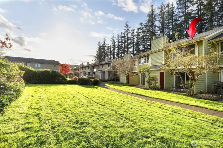 Discover this beautifully updated 2-bedroom, 1.5-bath condo in Bremerton, ideally positioned along the pristine Kitsap Golf & Country Club. Designed to live larger than expected, this two-story home offers a smart and functional layout with spacious bedrooms tucked upstairs. The main level features a seamless flow from the dining area to a stylish kitchen with stainless steel appliances, opening into a welcoming living room complete with a cozy wood-burning fireplace. Step through the slider to enjoy your patio—perfect for relaxing or entertaining. An attached garage adds everyday convenience. This home is truly move-in ready, with thoughtful updates already completed. Located just minutes from local dining, shopping, Kitsap Lake, and with easy freeway access for commuting, the location offers both comfort and accessibility. The HOA covers water, sewer, trash, and exterior maintenance, including common areas, roof, and siding—providing peace of mind and simplified living.