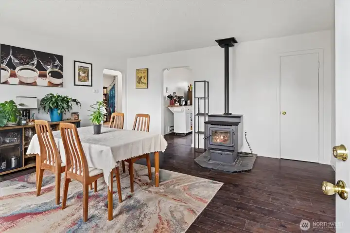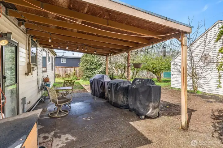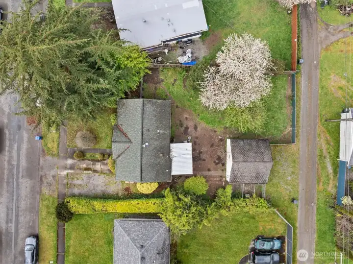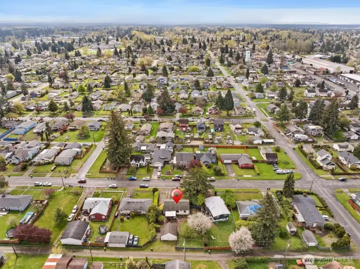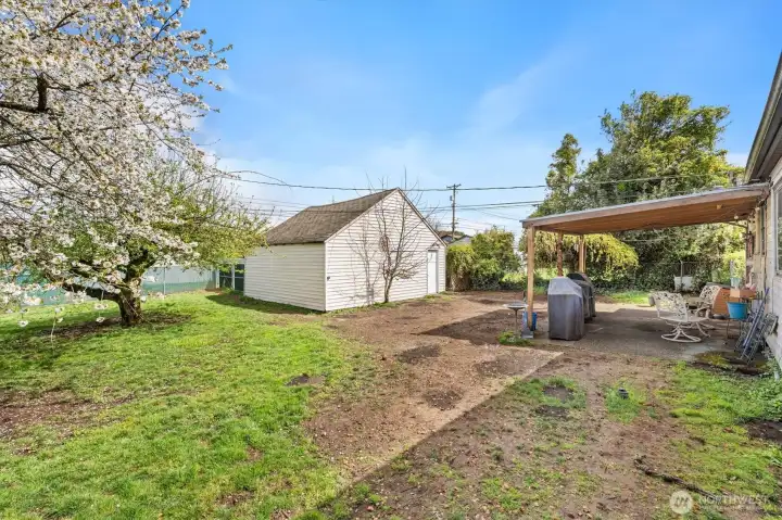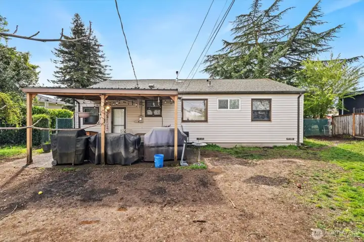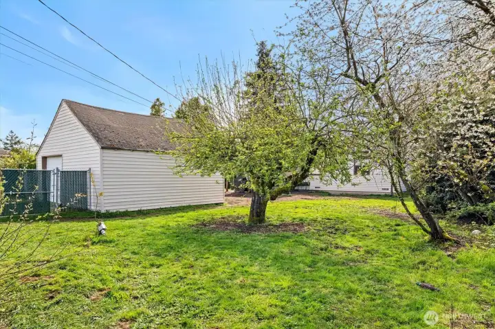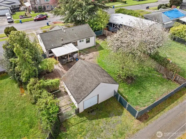 Charming Tacoma home with serious potential, whether you're buying your first home or thinking long-term investment. Situated on a spacious lot with alley access and connected to sewer, this property opens the door for a future DADU. Step inside to a functional layout with two light-filled living spaces, one with vaulted ceilings and large picture windows. Neutral finishes throughout make it easy to move right in and add your own style over time. Cozy up by the pellet fireplace in the winter, then enjoy summer nights under the covered patio overlooking the fully fenced backyard; perfect for entertaining, pets, or gardening. The detached 2-car garage with workshop space and alley access offers flexibility for hobbies, parking, or future development. Conveniently located near shopping, schools, and I-5 for an easy commute.