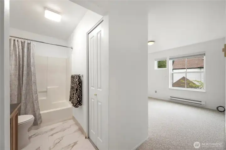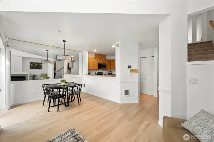 Welcome to this bright and inviting two-story condo located in the desirable Village on James. A gated community known for convenience and comfort. HOA dues include water, sewer, natural gas, garbage, road maintenance, and access to community amenities. The main level features an open, light-filled layout with all-new kitchen appliances, a comfortable living room with a gas fireplace, and vaulted ceilings that create an airy feel. Enjoy all-new flooring throughout, adding a fresh, modern touch. Step outside to your private patio, perfect for morning coffee or evening relaxation. An individual one-car garage offers plenty of storage. Upstairs, you’ll find two well-appointed bedrooms, each with its own bathroom, including a generous primary suite with a walk-in closet. Community amenities include an outdoor pool, hot tub, cabana, and exercise room, ideal for year-round enjoyment. All of this in a fantastic location near Kent Station, shopping, dining, and major freeways, making commuting and daily errands a breeze. All furniture currently in the home is available to stay with the home.