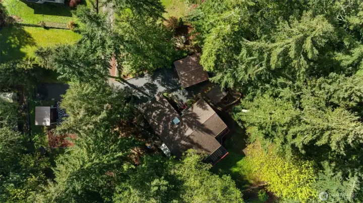 2025 Shed with a loft, fruit trees, a green house, and RV parking.