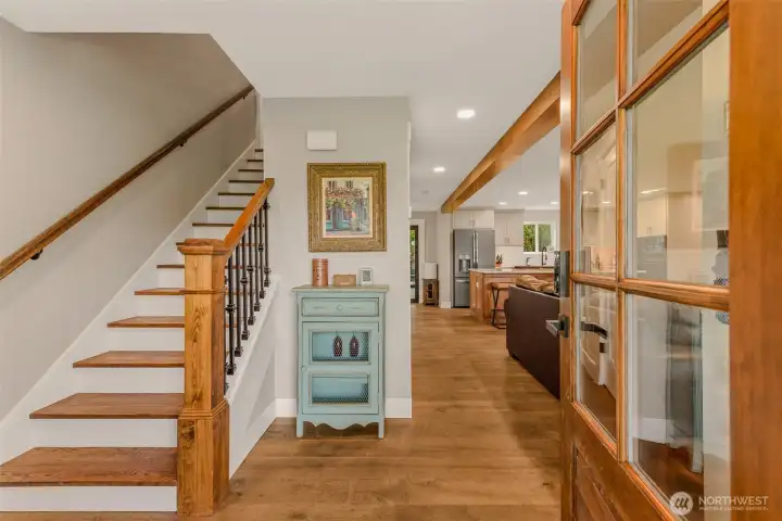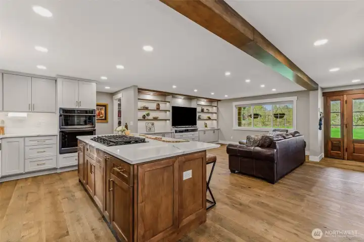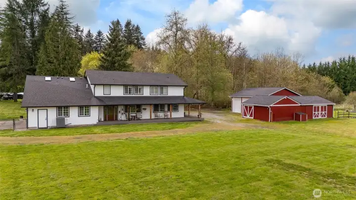 Situated on a 1.44-acre corner lot, this beautifully remodeled and expanded home offers 5 bedrooms, including two primary suites, and 4.5 bathrooms. The layout includes a main-level office, a spacious upstairs bonus room, and convenient utility rooms on both levels. The kitchen features a large island, gas appliances, and flows seamlessly into the dining area. The main-level primary suite offers a walk-in closet, additional shoe closet, and a spacious bath with soaking tub, walk-in shower, and double sinks. Designed for entertaining, the home opens to an impressive outdoor living space with a 12-foot panoramic door, covered cedar wrap-around porch, gas fireplace, outdoor kitchen, built-in seating, TV, and an 8-person hot tub, all within a fenced backyard. The property also includes a 900 sq ft insulated shop with power and water, a 2-stall barn, greenhouse, raised garden beds, and two 50-amp RV pads with electric and water hookups. This home offers the perfect blend of comfort, space, and functionality. Don’t miss this opportunity to make it yours!