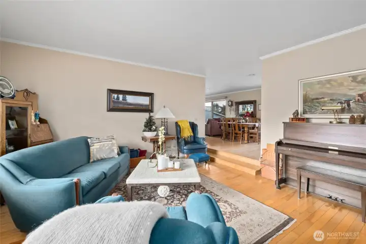 Dining room leads into another large living area.