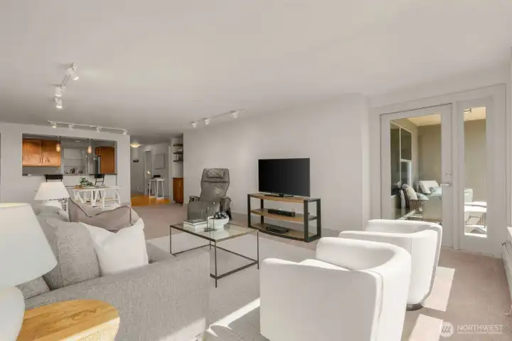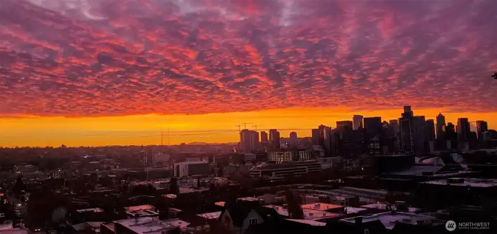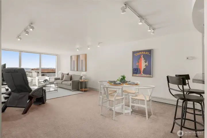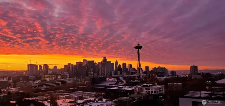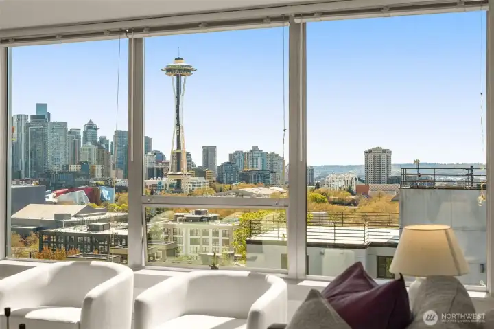 Iconic, unobstructed views of Downtown Seattle, the Space Needle, and Elliott Bay set the tone for this south-facing Queen Anne condo—an ever-changing backdrop you’ll never tire of. Perched on the coveted south slope in a boutique 20-unit building, this light-filled home offers 2 bedrooms, 1.75 baths, including a comfortable primary suite, and a well-designed 1,110 square foot layout. The updated kitchen features gas cooking, cherry cabinetry, granite countertops, stainless steel appliances, and a breakfast bar perfect for your morning routine, while expansive south-facing windows bring in beautiful natural light throughout the day. Enjoy generous closets and storage, including a large storage area conveniently located just in front of your reserved parking spaces, along with an in-unit washer and dryer. Two deeded parking spaces add rare convenience, and the building is pet-friendly. Ideally located near Queen Anne shopping and dining, South Lake Union, Climate Pledge Arena, and Downtown, with easy access to Myrtle Edwards Park and Seattle Repertory Theatre. Step onto the deck and take in the full, unobstructed panorama, there is no place you would rather start and end your day enjoying the iconic views!