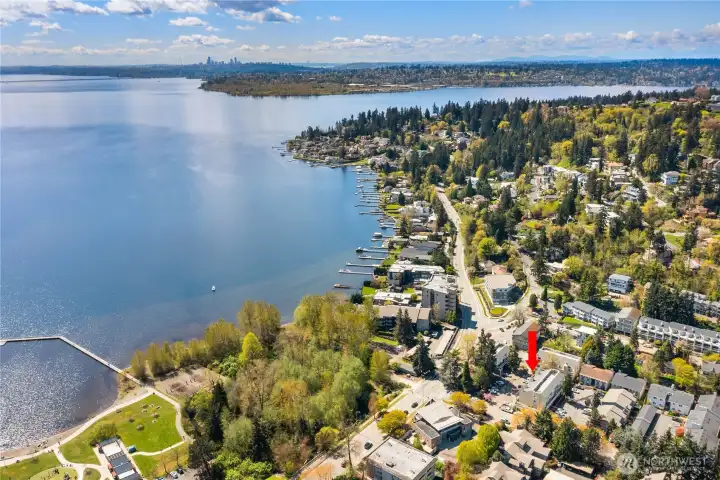 Park Place location with Juanita Park across the street with swimming, volleyball, play area, trails and starting back in May, the Farmers Market