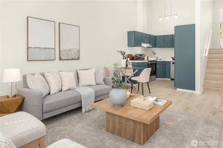 Vaulted ceilings flood the home with light