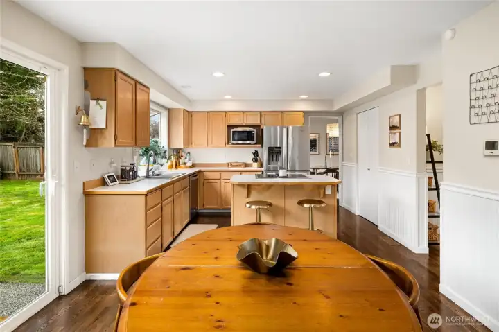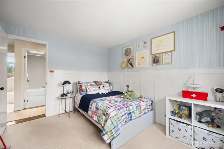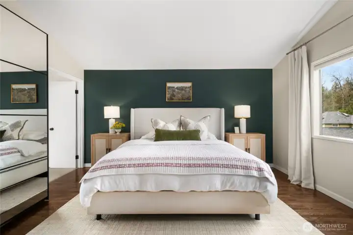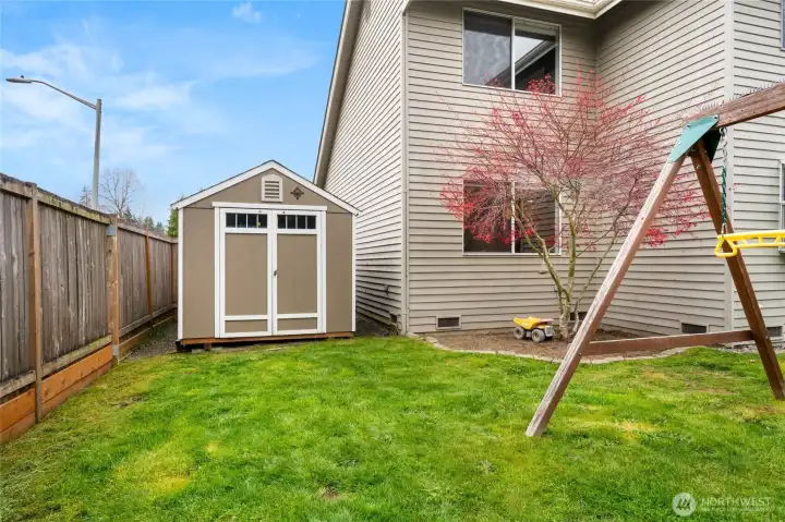 This beautiful 5-bedroom, 2.5 bath home sits on a prime corner lot in the Hearthstone neighborhood. Thoughtfully designed for both everyday living and entertaining. Inside, you’ll find rich hardwood floors throughout and abundant natural light that enhances the home’s open, airy feel. The traditional layout flows effortlessly into the main living areas, where newly added custom built-ins are featured in the family room, dining room with marble countertop, and laundry room that elevate both style and functionality. The spacious primary suite offers a peaceful retreat, complete with an en-suite full bath and a connected bedroom – perfect for a home office, nursery, or private flex space. Step outside and experience true indoor-outdoor living. The fully fenced backyard features a large entertaining patio and mature trees that provide exceptional privacy. A new large outdoor shed adds valuable storage for tools, gear, or seasonal items. Additional highlights include a new water heater, presidential roof, and newly added attic access with flooring for convenient extra storage. The double car garage offers high ceilings and room for a workspace and storage. The Hearthstone neighborhood features nearby walking trails, beautiful ponds and multiple playgrounds, this home offers it all. Just minutes from Silver Lake, Mill Creek Town Center, parks, and easy access to Snohomish, Everett, I-405 and Hwy 9.